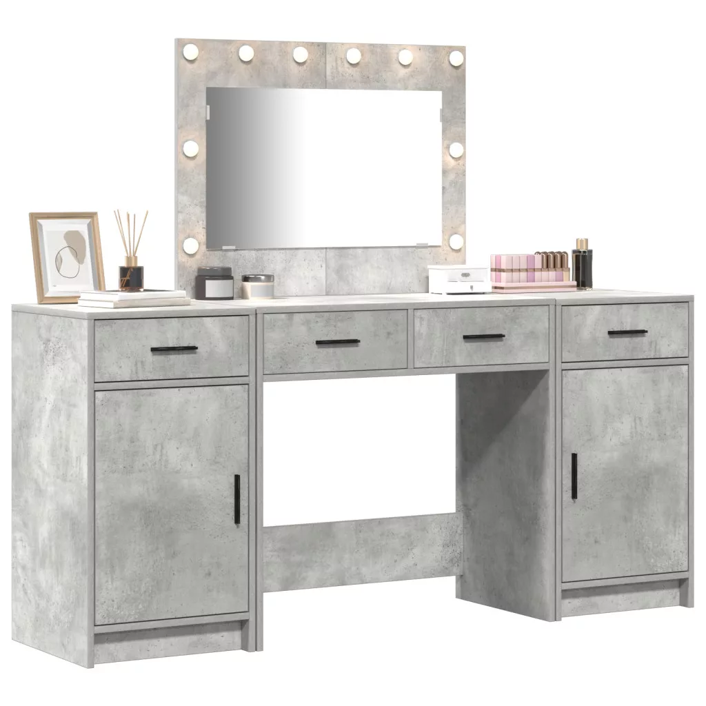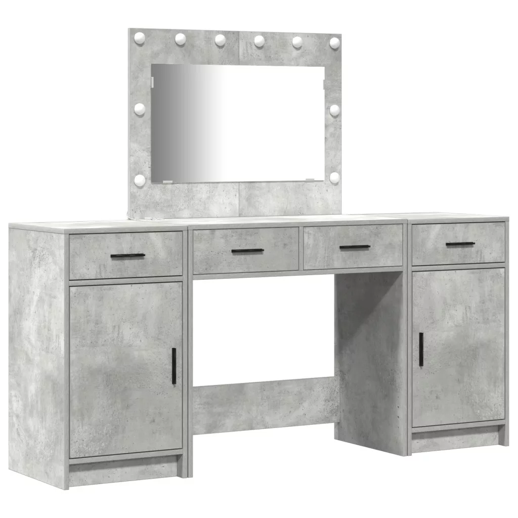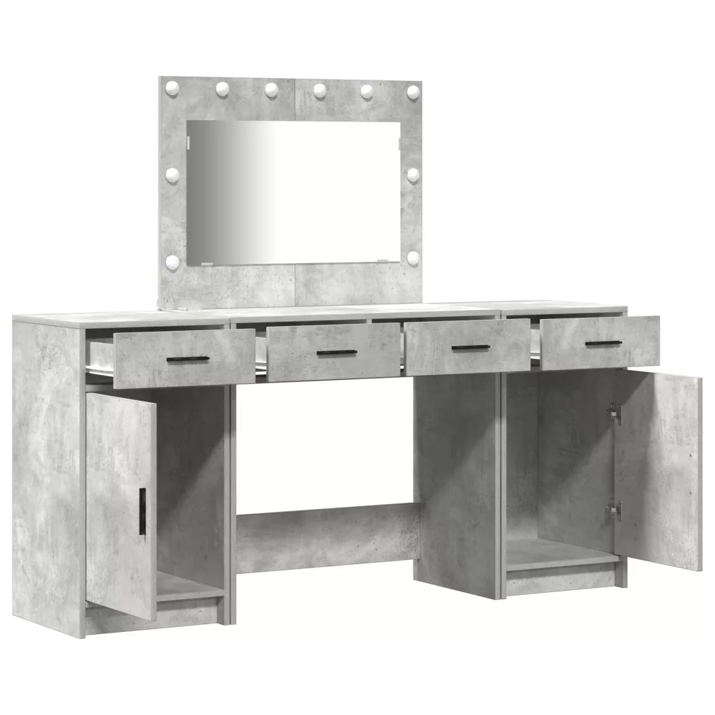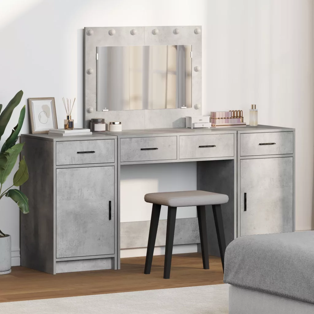 3 darabos sminkasztal szett LED-del, beton szürke, mérnöki fa
