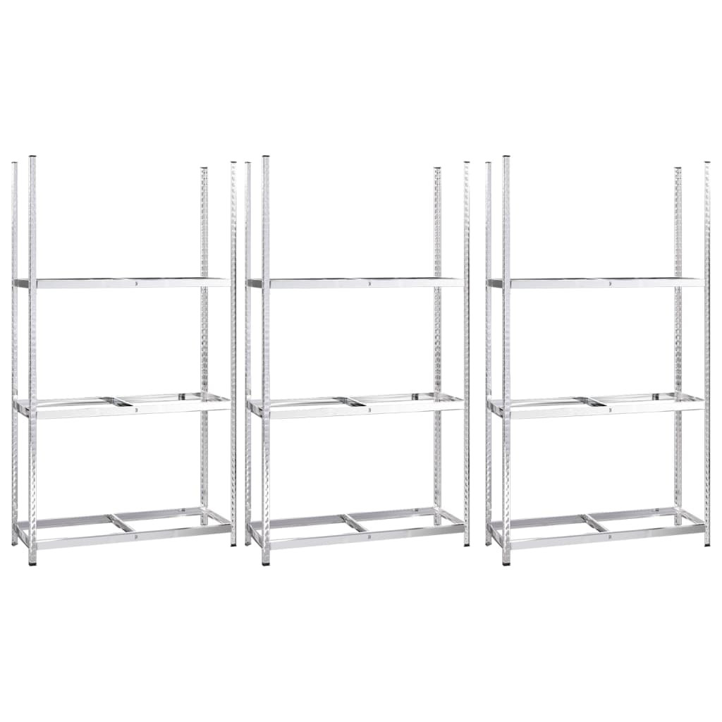 3 db ezüstszínű 3 szintes acél gumiabroncstartó 110x40x200 cm
