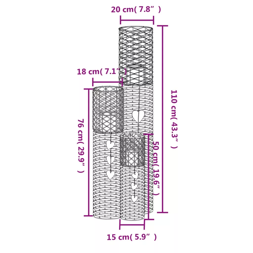 Teremtsen meleg és romantikus hangulatot otthonában vagy a kertben ezekkel az elegáns gyertyatartókkal! Természet ihlette dizájn: A természetes vesszőfonatból profi módon, kézzel elkészített gyertyás lámpás a természetes szépség csábító érintésével árasztja el a belső teret.Robusztus támaszték: Az otthoni dekorációban egy üvegedény található a gyertyák biztonságos elhelyezéséhez.Széles felhasználási lehetőség: 3 db-os kiszerelésben, 3 méretben kapható, ezek a gyertyatartók ideálisak beltéri használatra nappaliban, fedett verandán, konyhában vagy hálószobában, és kültéren is használhatók. Emellett különféle eseményekre is alkalmasak, például esküvőkre, bankettekre, bulikra, ünnepségekre stb.