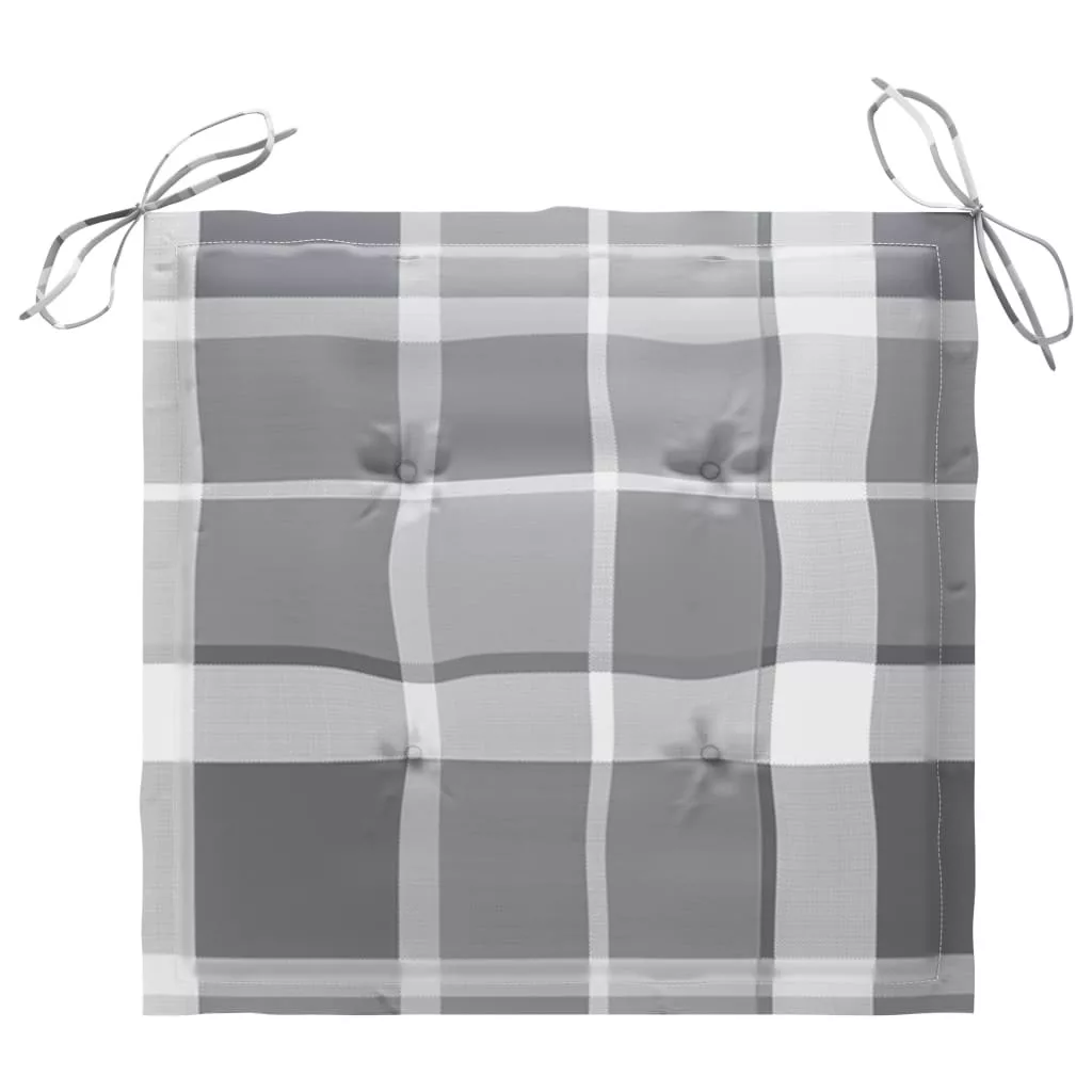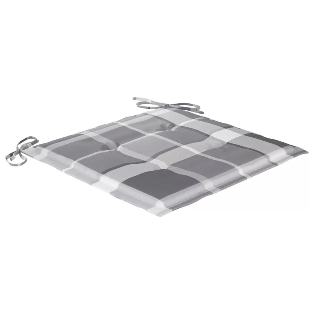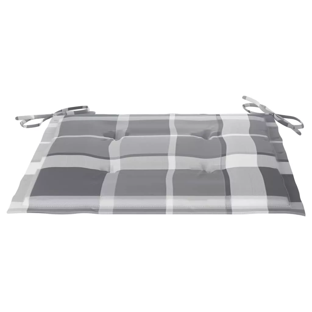 3 db tömör tíkfa kerti szék szürke kockás párnával