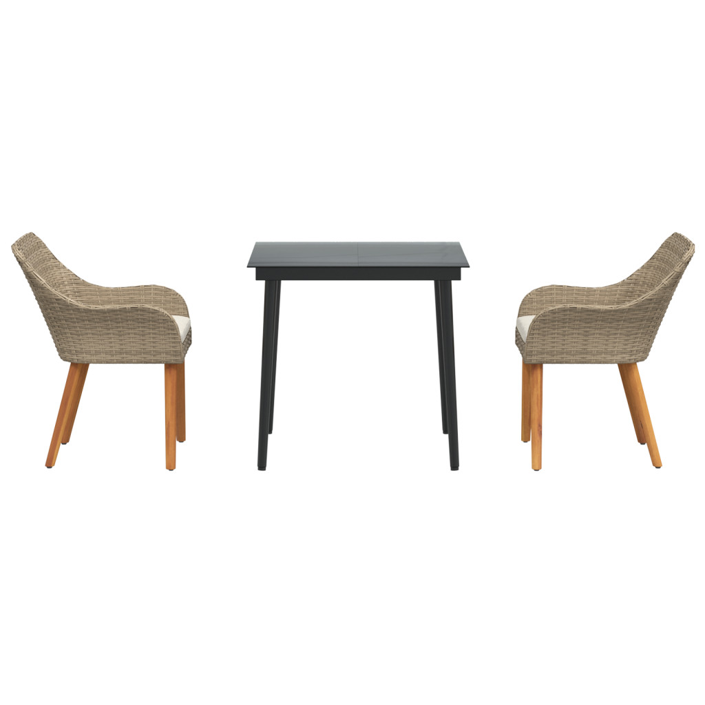 3 részes Kert Étkező Szett Bézs Poly Rattan