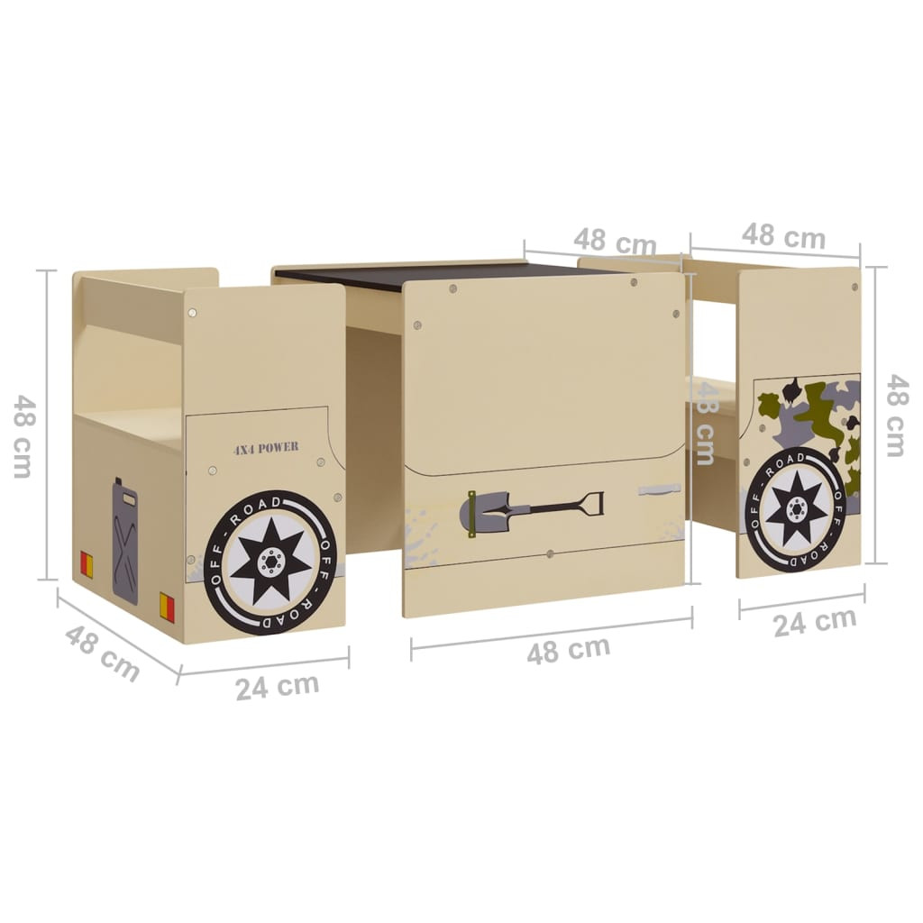 3 részes MDF terepjáró formájú gyerekasztal- és székkészlet
