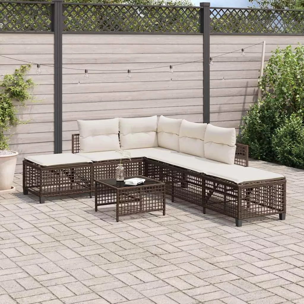 3 részes barna polyrattan kerti sarokkanapészett párnával