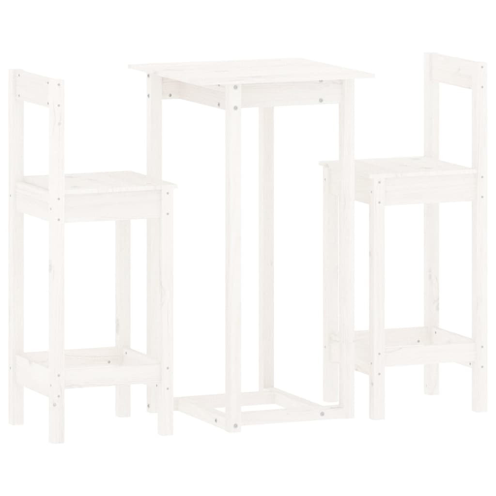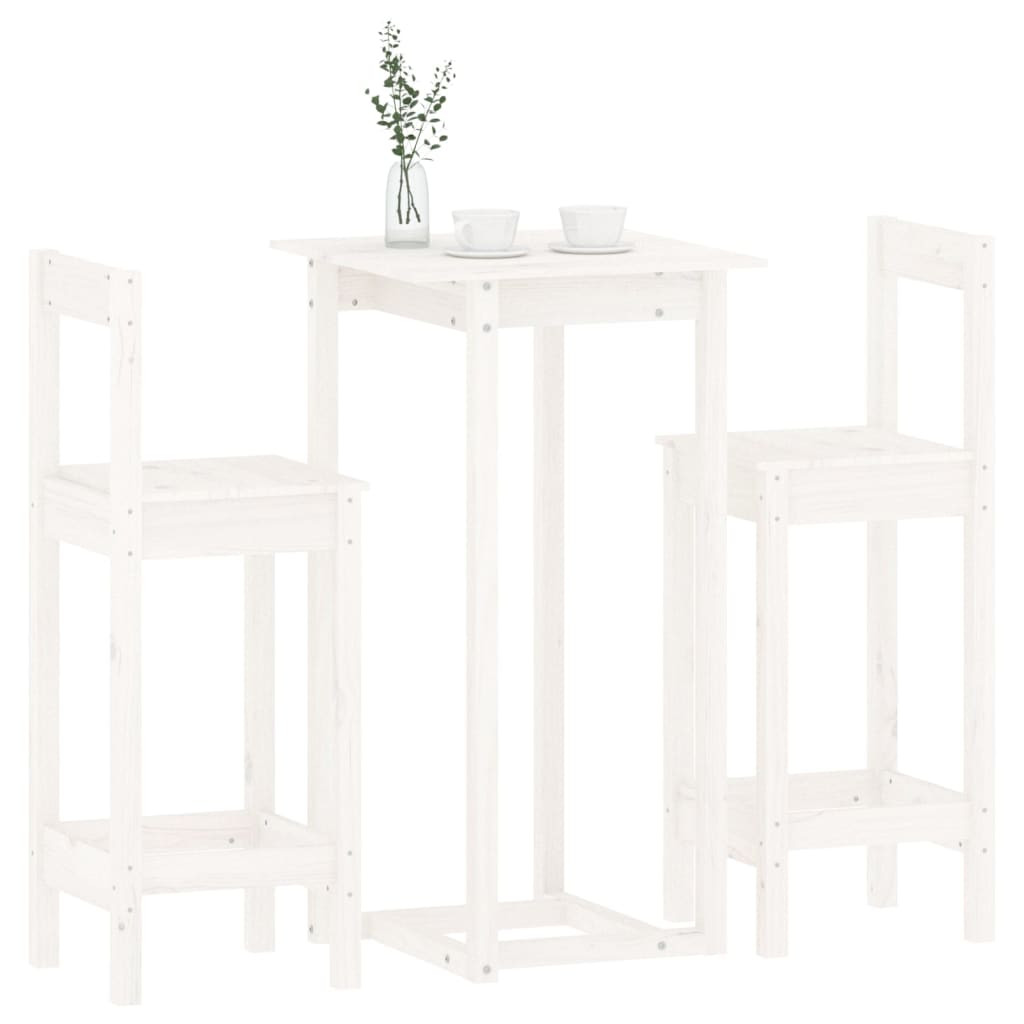 Kortyolgassa kedvenc borát vagy fogyasszon el egy kellemes vacsorát családja vagy barátai társaságában ennél a gyönyörű, fából készült bárszettnél ülve. Tömör fenyőfa: Ez a bárszett tömör fenyőfából készült. A tömör fenyőfa egy gyönyörű, természetes anyag. A fenyőfa egyenes erezetű, a csomók adják az anyag jellegzetes, rusztikus megjelenését.Stabil váz: A faváz erős szerkezetet és stabilitást biztosít.Masszív felső lap: A bútorgarnitúra bárasztala masszív asztallappal rendelkezik, amely ideális helyet nyújt italok, ételek vagy dísztárgyak számára. Megjegyzés:Az egyszerű összeszerelés érdekében minden termékhez mellékelünk összeszerelési útmutatót. Maximum 110 kg ülésenként.