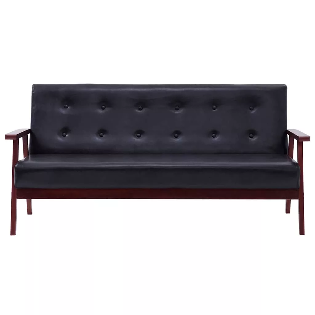 Ez a rendkívül kényelmes ülőgarnitúra letisztult dizájnnal bír, és ideális lesz beszélgetésekhez, olvasáshoz, tévézéshez, vagy csak egyszerűen pihenéshez. A kanapészett puha műbőrrel lett kárpitozva, a komfortérzés növelése érdekében pedig habbal bélelve. Tömör favázának köszönhetően stabil és strapabíró. A csomag 2 db karosszéket és 1 db háromszemélyes kanapét tartalmaz.