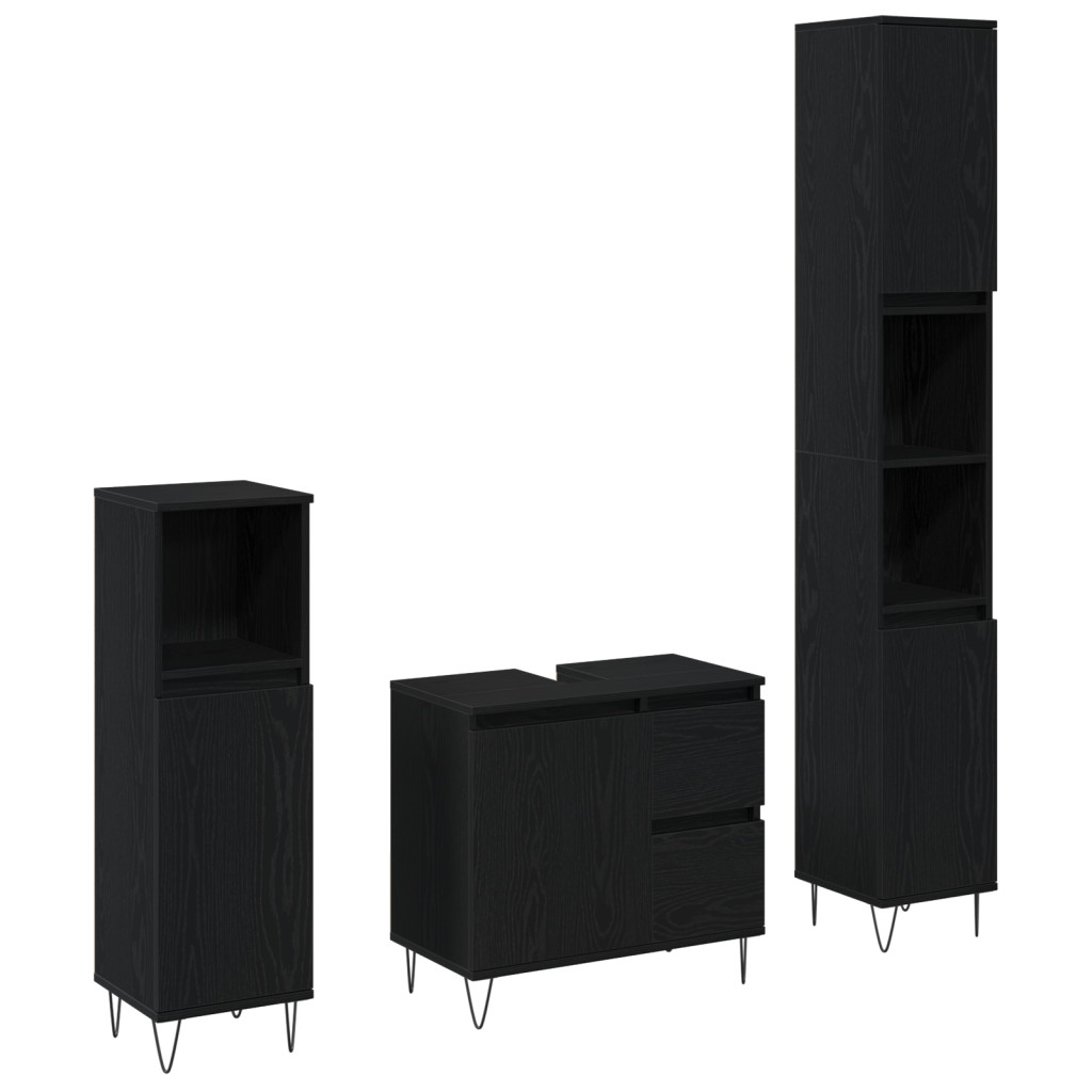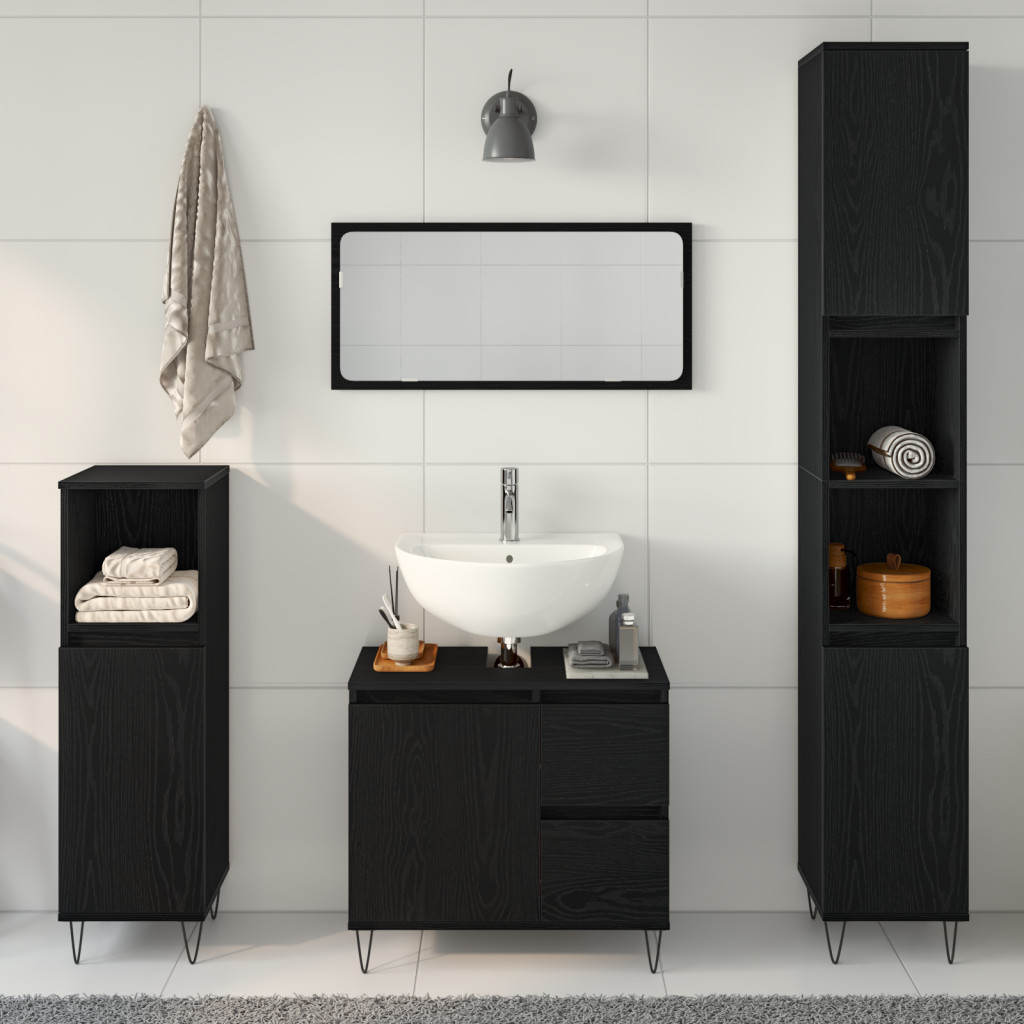 3 részes fürdőszobai bútor készlet fekete tölgy szerelt fából
