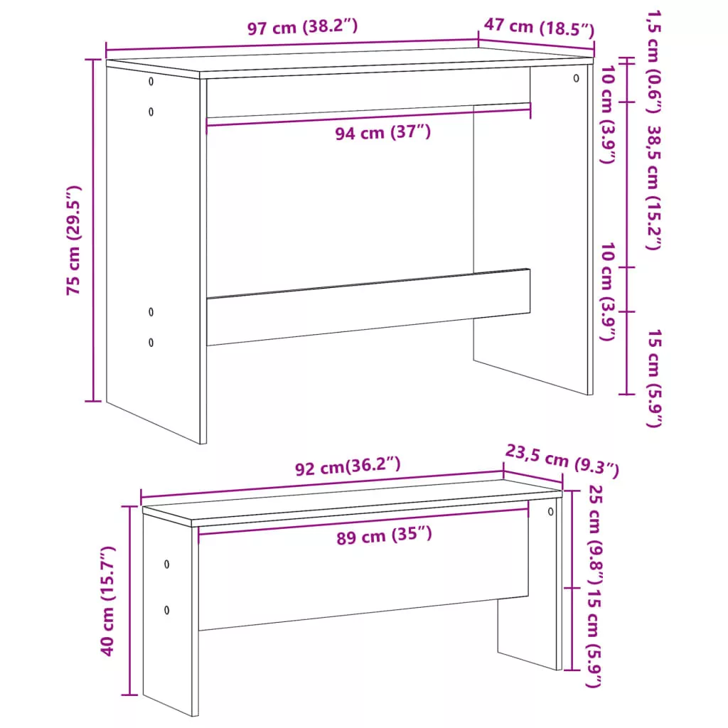 Hozzon létre egy hangulatos és hívogató helyet a nap indításához, vagy élvezze a nagyszerű étkezéseket ezzel az étkezőasztallal és paddal! Stabil és tartós anyag: A szerelt fa tartós és stabil anyag sima felülettel, amely ellenáll a nedvességnek, a vetemedésnek és a hasadásnak, így megbízható választás különféle projektekhez.Robusztus asztallap: Ez az étkezőasztal robusztus asztallappal rendelkezik, így ideális ételek, harapnivalók, italok felszolgálására, és kedvenc dekorációinak bemutatására.Tágas ülőhely: A tágas ülőpadnak köszönhetően ez az étkezőgarnitúra tökéletes a családdal és barátokkal való összejövetelekhez és étkezésekhez.Könnyen karbantartható: Sima felületének köszönhetően az étkezőgarnitúra nedves ruhával könnyen tisztítható, és kevesebb gondozást igényel. Figyelem:A felborulás elkerülése érdekében ezt a terméket a mellékelt fali rögzítőeszközzel kell használni.
