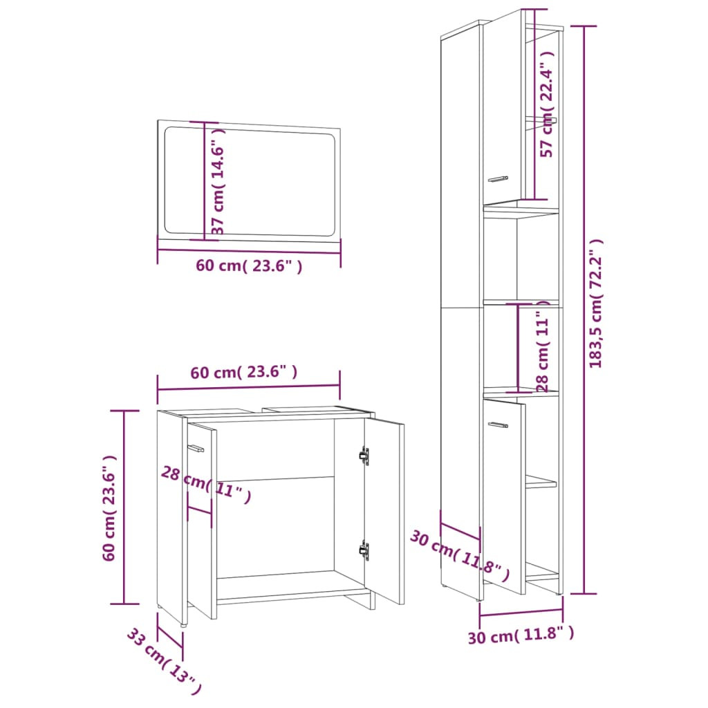 3 részes füstös tölgy színű szerelt fa fürdőszobai bútorszett