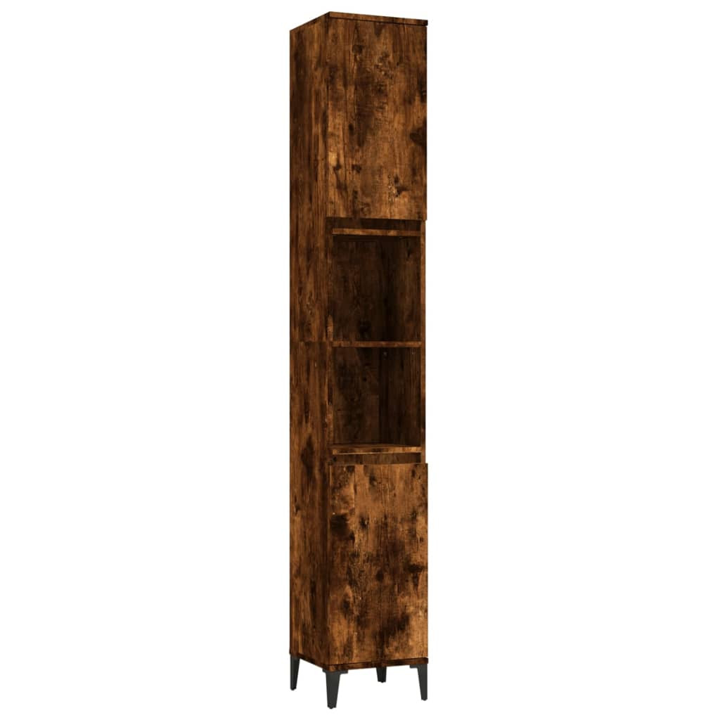 3 részes füstös tölgyszínű szerelt fa fürdőszobai szekrényszett