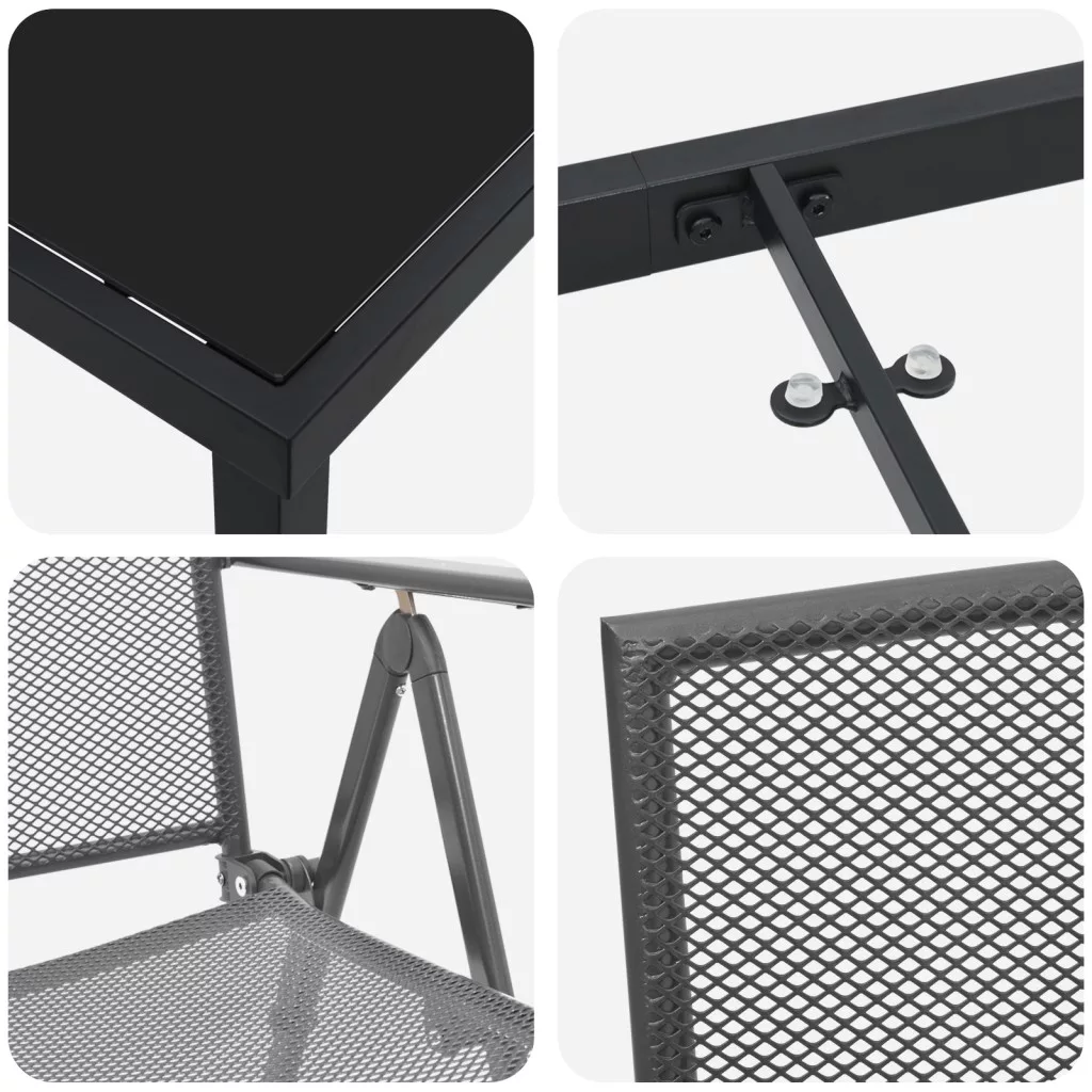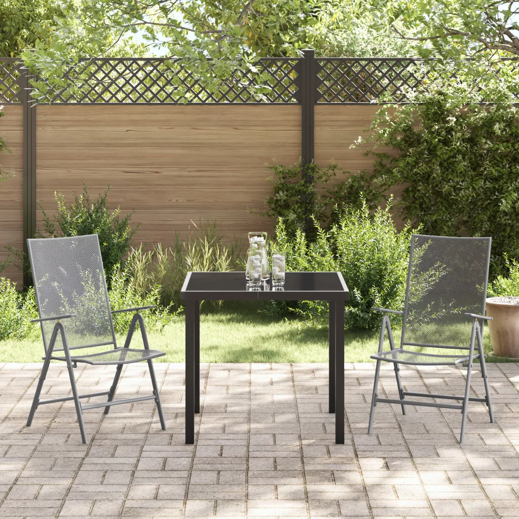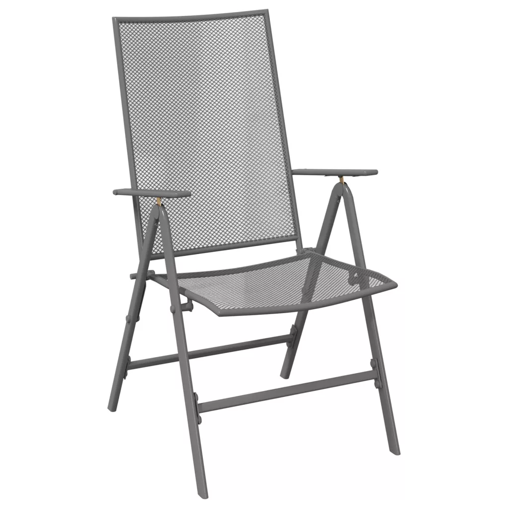 Ez a vidaXL összecsukható kertiszék szett nagyszerű kombinációja a stílusnak és a praktikumnak. Tökéletes teraszra, kertbe vagy étkezőbe. Az antracit szín és a trendi hálós dizájn kiváló hangulatot teremt, így ideális választás barátok vendégül látására vagy csak a szabadban való pihenésre. Trendibb hálós dizájn hűsít a melegben, modern megjelenést adva a kertnek vagy nappalinak. Többszörösen használható acélból készült, e-coat és porszórt bevonattal, a székek a tartósságra lettek tervezve, időjárásállóan és stílusosan az idő múlásával. Az állítható háttámla hat féle hátradőlési pozícióval van ellátva, így könnyedén találhatsz egy tökéletes pihenőszöget, ami tökéletesen passzol a kényelmedhez. Összecsukható, így könnyen tárolható, a székek praktikusak kisebb helyekre és segítenek a terasz rendezetten tartásában. A kiszállítás két hátradőlő széket tartalmaz, biztosítva a kényelmet neked és egy barátodnak egy hosszú nap után. Maximum 110 kg ülésenként.