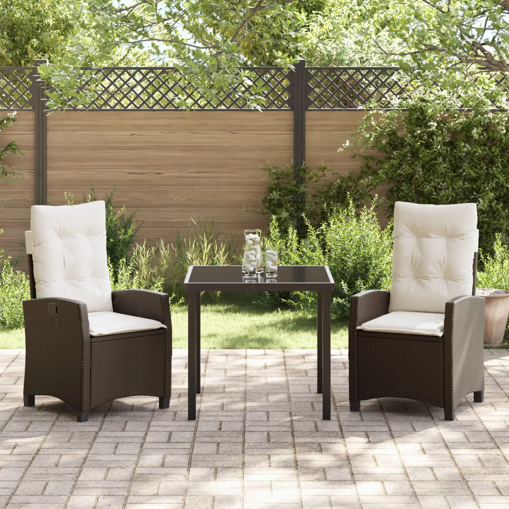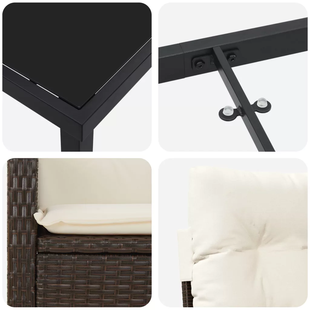 3 részes kert étkezőszett párnákkal - Barna poli rattan