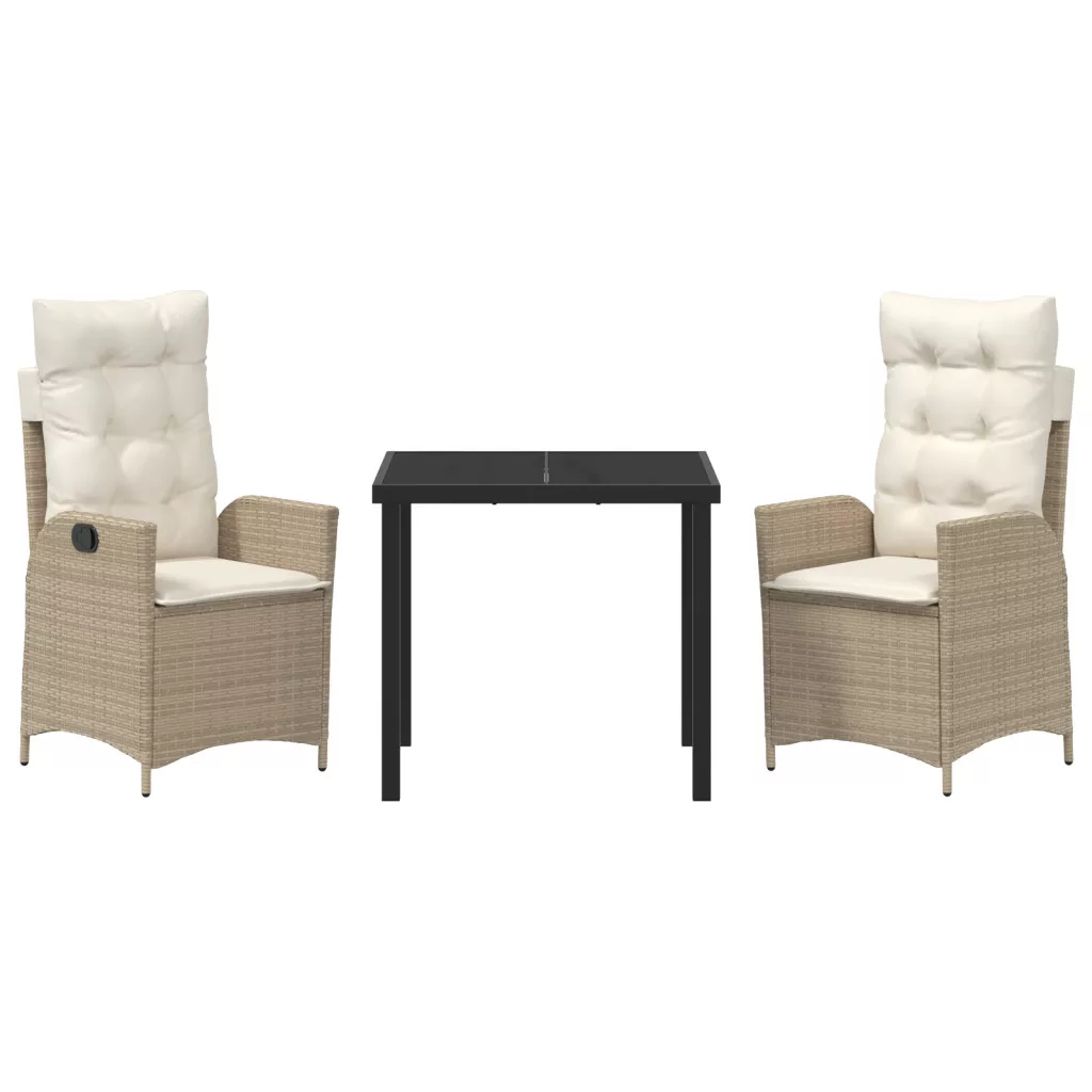 3 részes kerti étkezőgarnitúra párnákkal bézs poli rattan