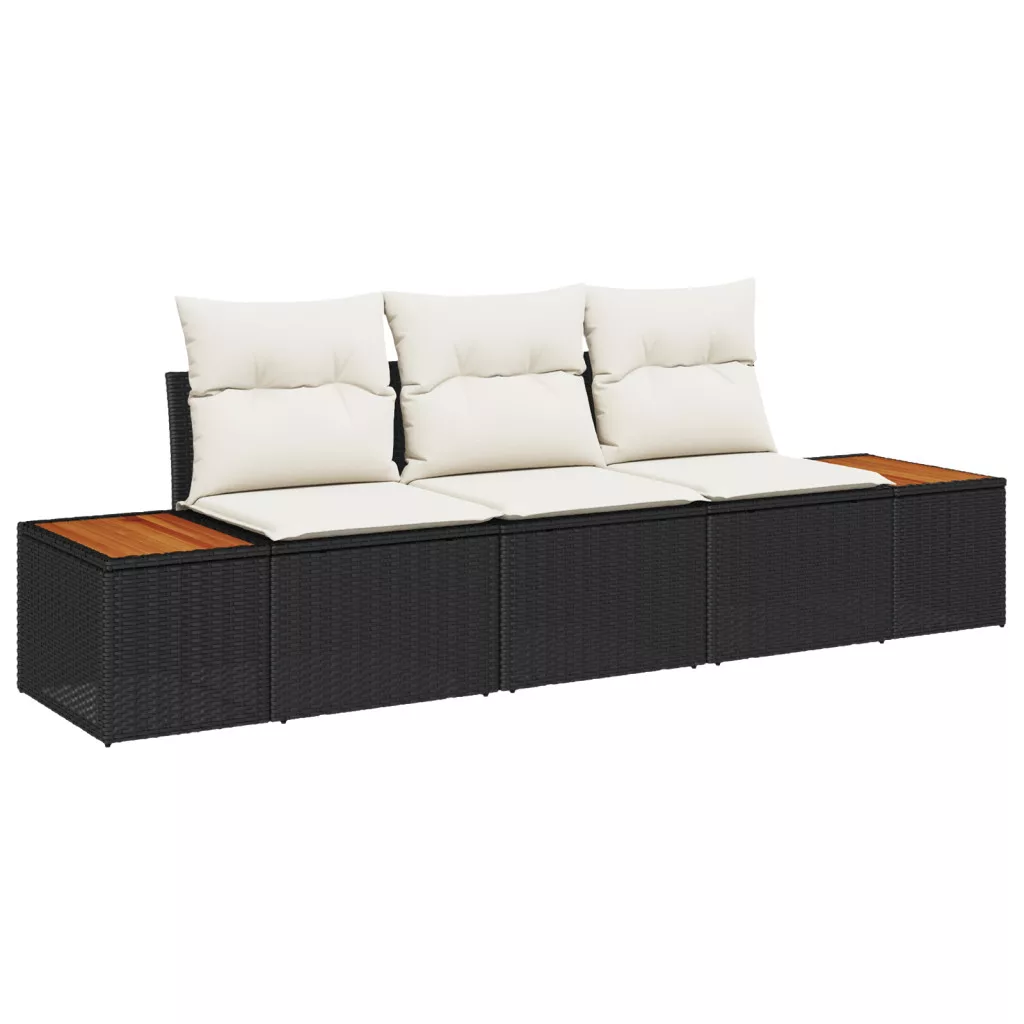 3 részes kerti kanapé szett párnákkal fekete polirattan akácia