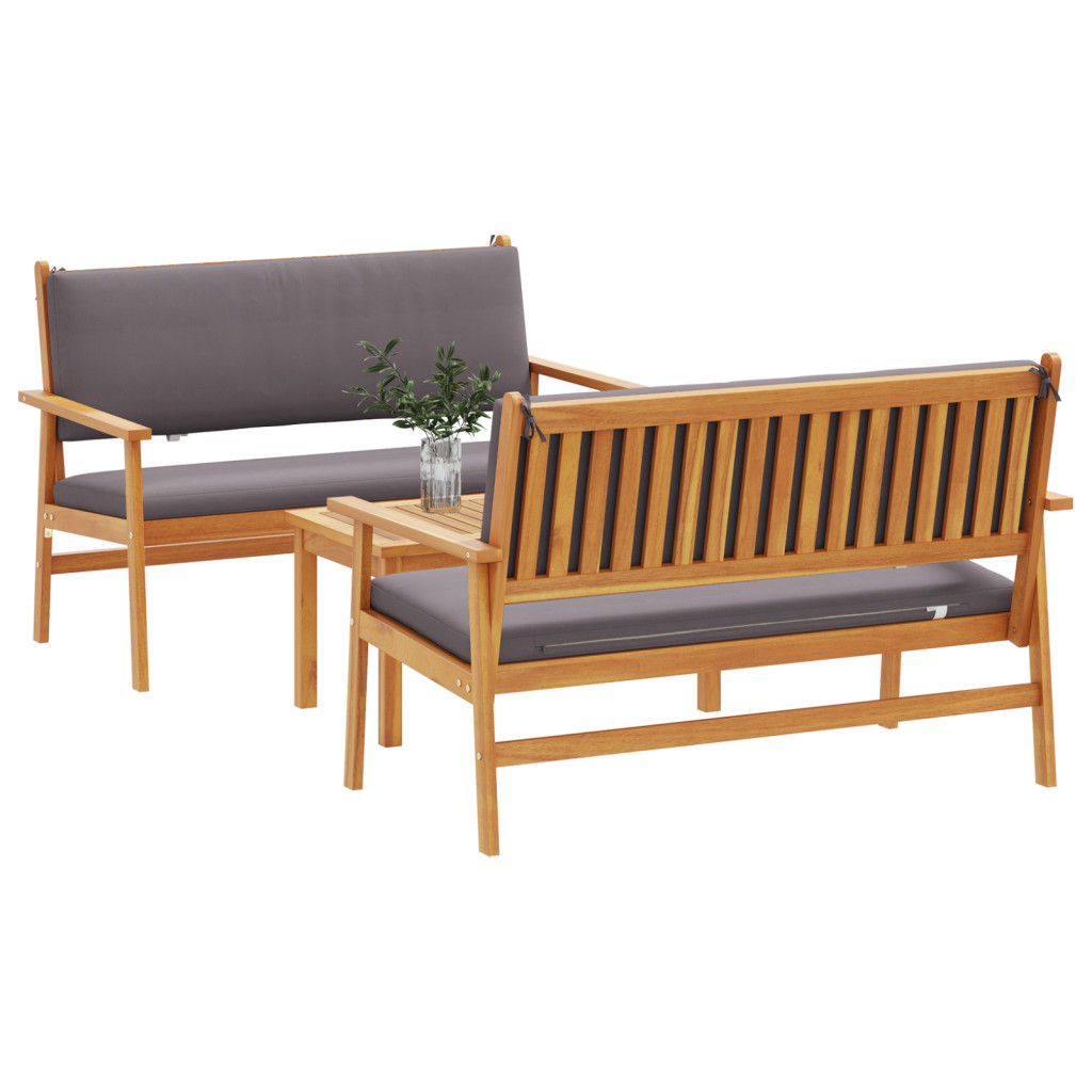3 részes kertiszett párnákkal, tömör akácfából