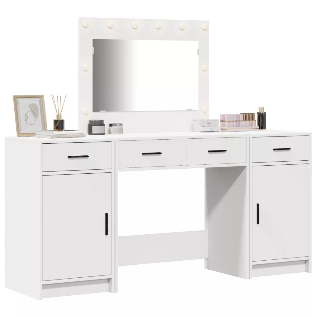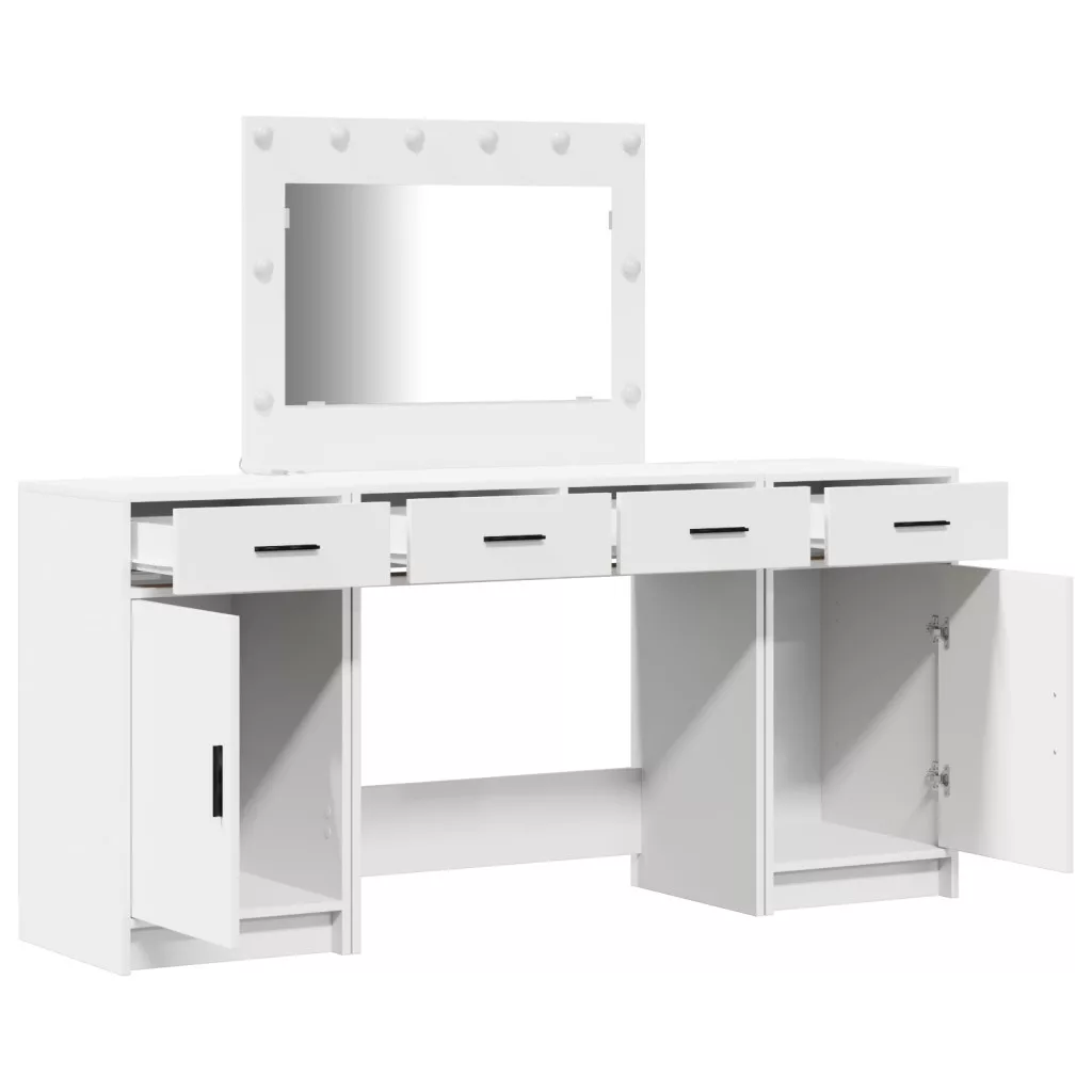 3 részes öltöztető asztal szett LED-del, fehér mérnöki fával
