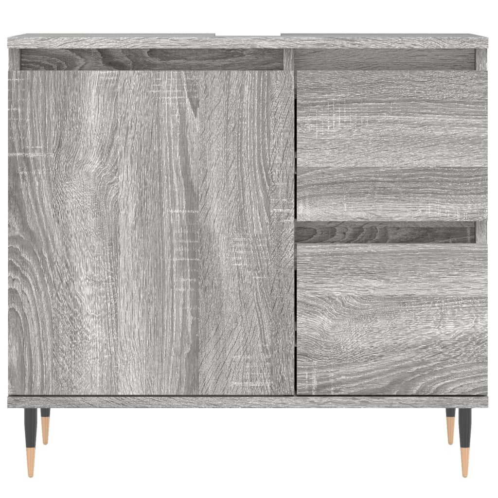 3 részes szürke sonoma színű szerelt fa fürdőszobai bútorszett