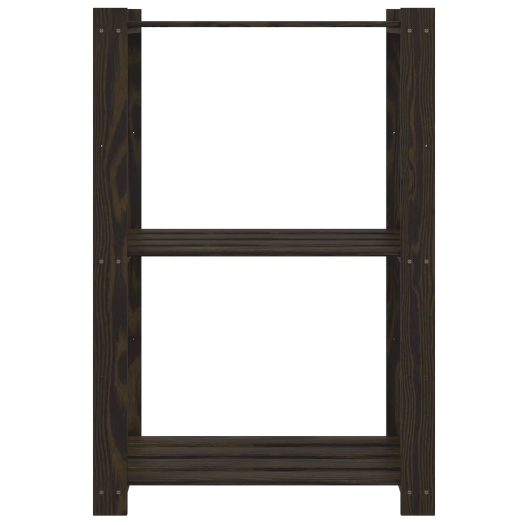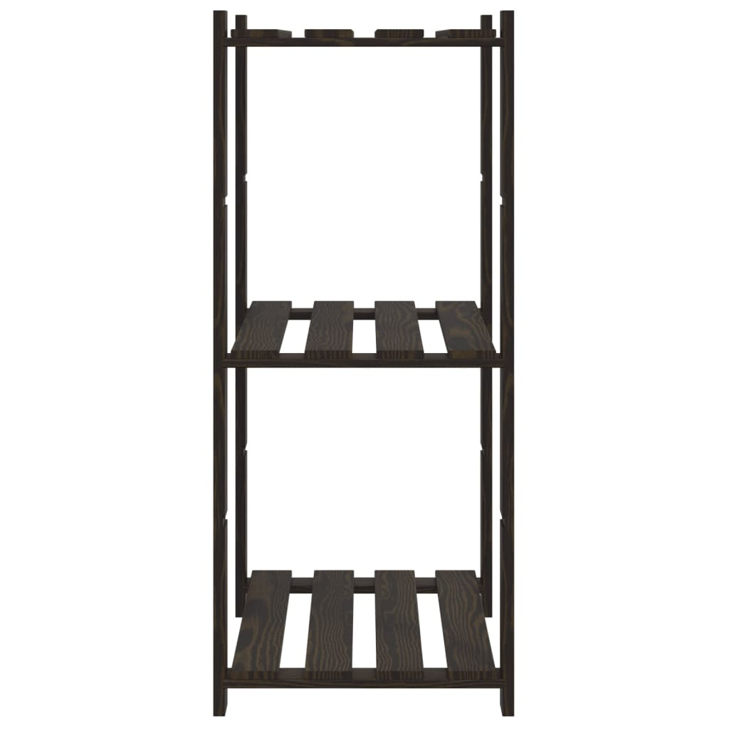 3 szintes fekete tömör fenyőfa tárolóállvány 60 x 38 x 90 cm