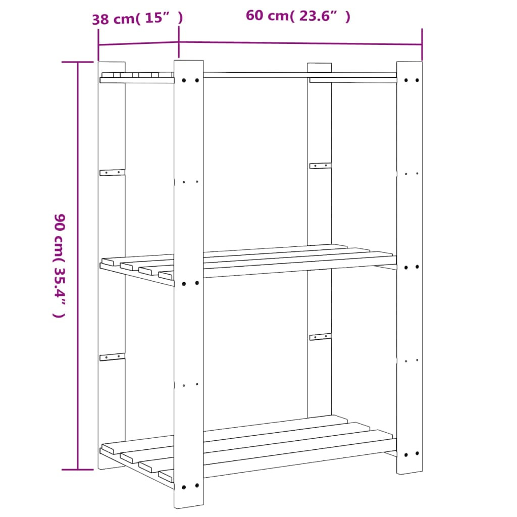 3 szintes szürke tömör fenyőfa tárolóállvány 60x38x90 cm