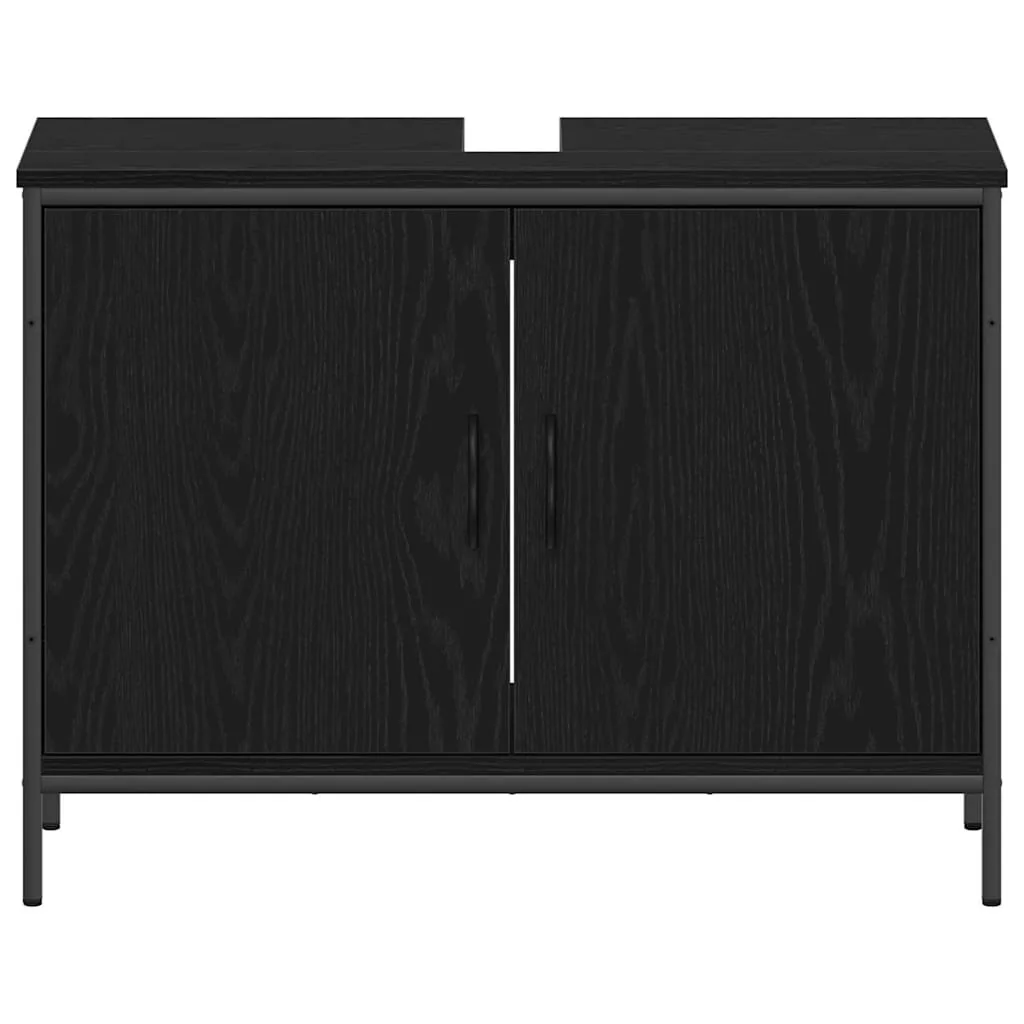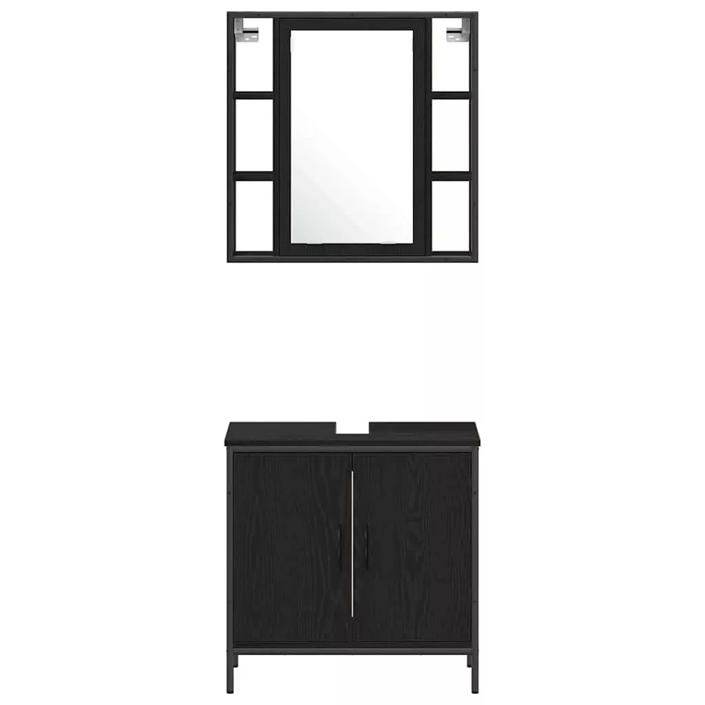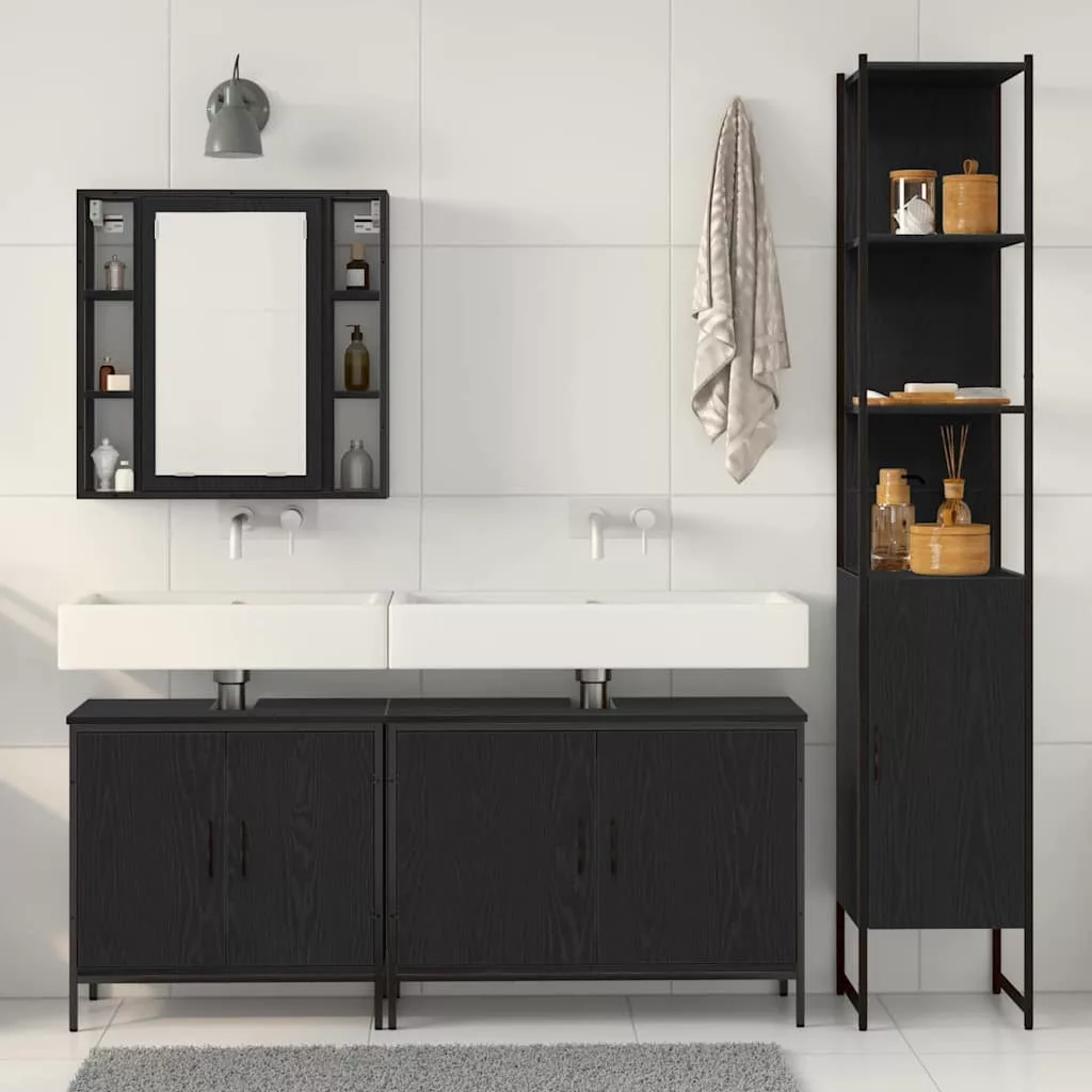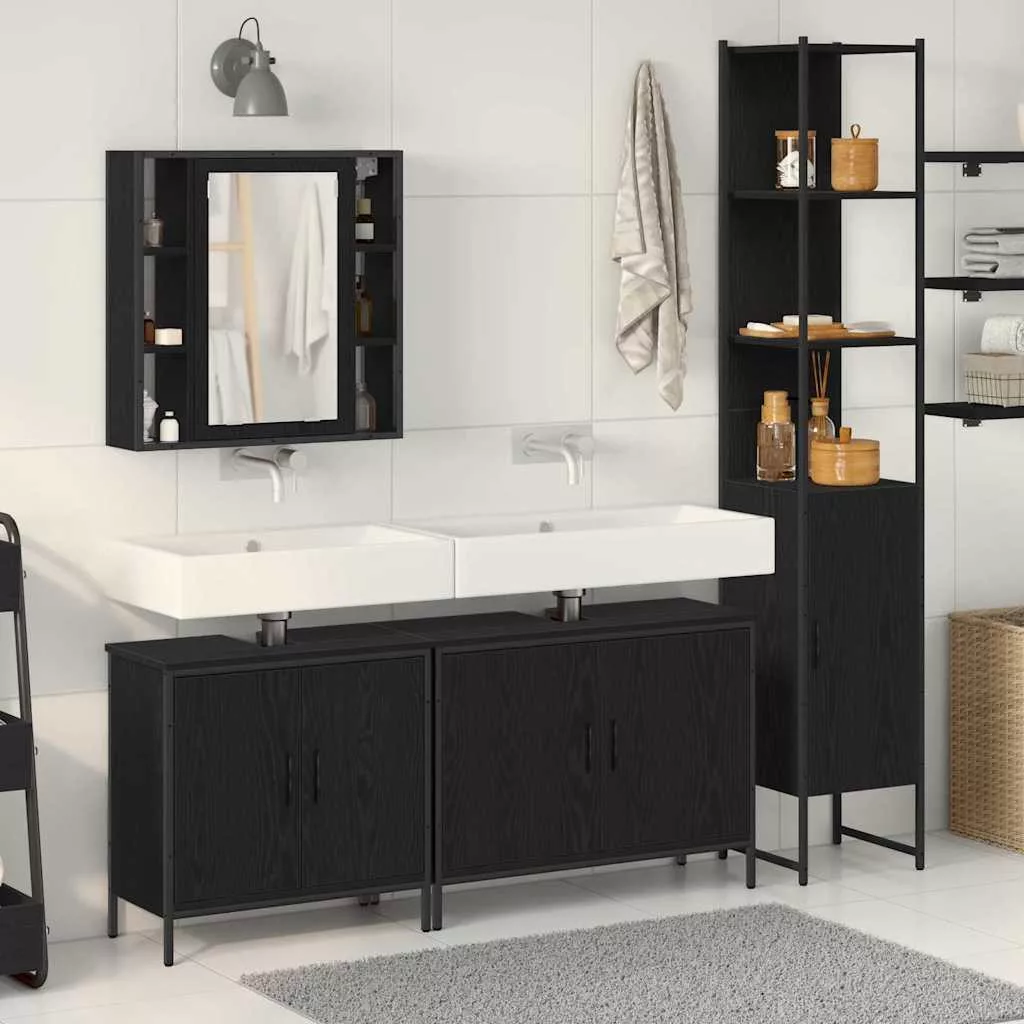 4 Részes Fürdőszoba Bútor Szett Fekete Tölgy Műanyag Forgácslap