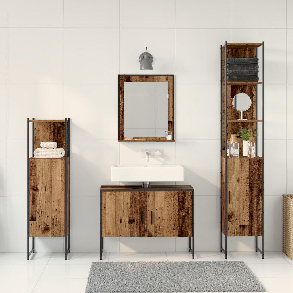 4 Részes Fürdőszoba Bútor Szett Régi Fa Szerelt Fa