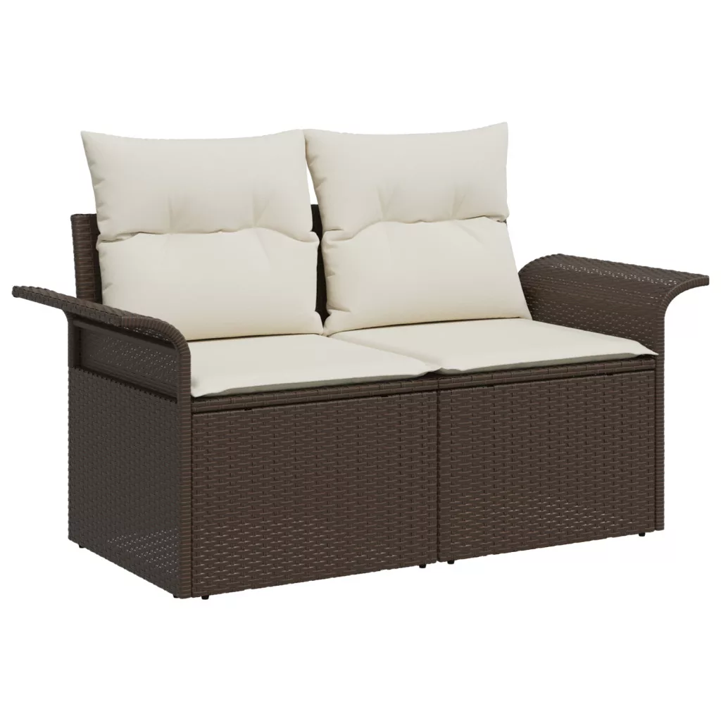 4 darabos Kerti Kanapé Szett Párnákkal Barna Poli Rattan
