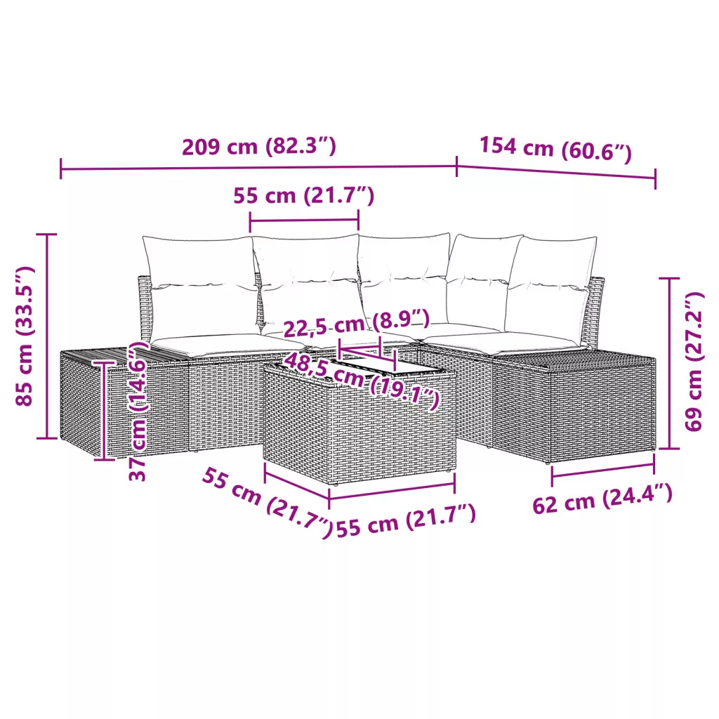 4 darabos kertiszöglet kanapé szett párnákkal szürke poli rattan
