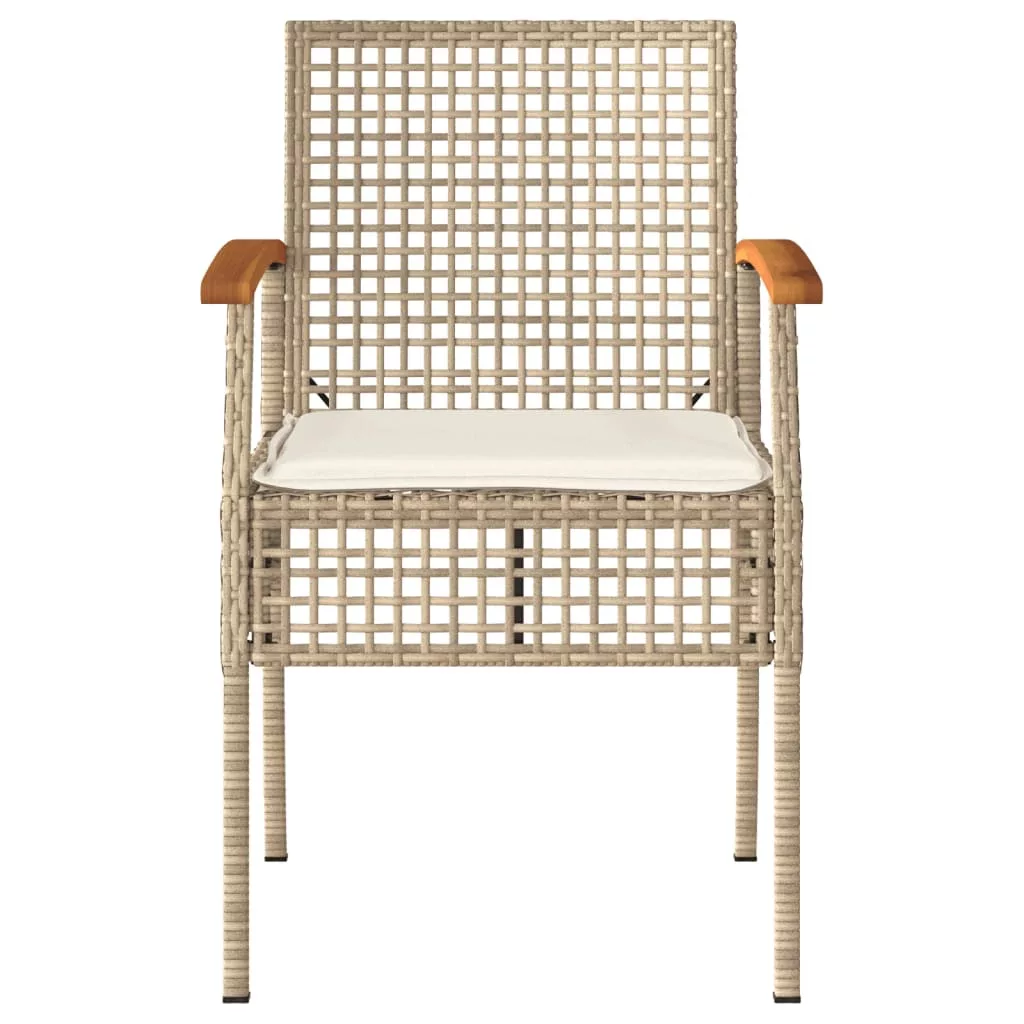 4 db bézs polyrattan és akácfa kerti szék párnákkal