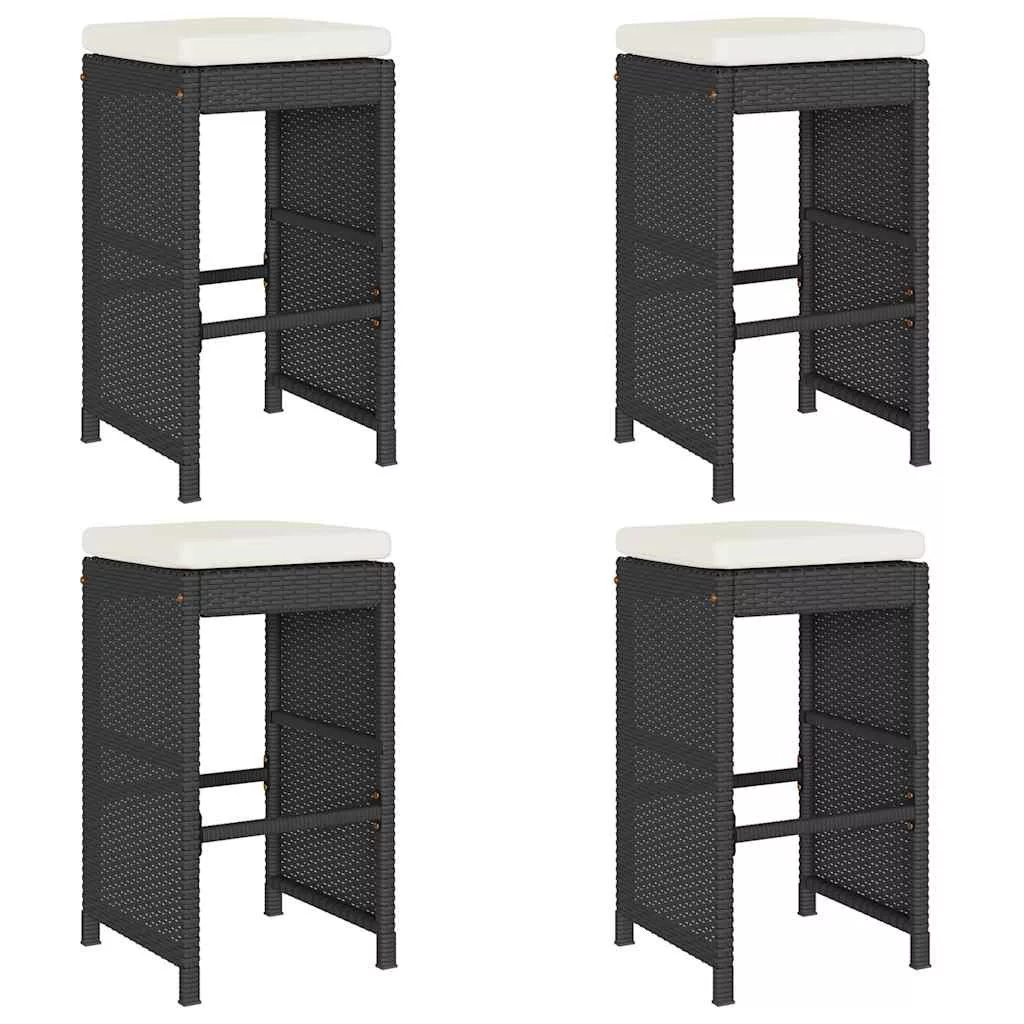 4 db fekete polyrattan kerti bárszék párnával