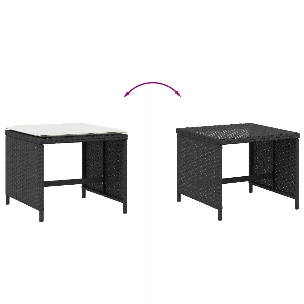 4 db fekete polyrattan kerti szék párnákkal 40 x 40 x 35 cm