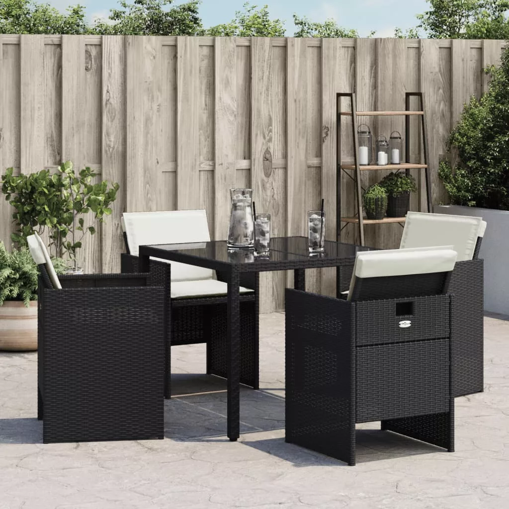 4 db fekete polyrattan kerti szék párnával