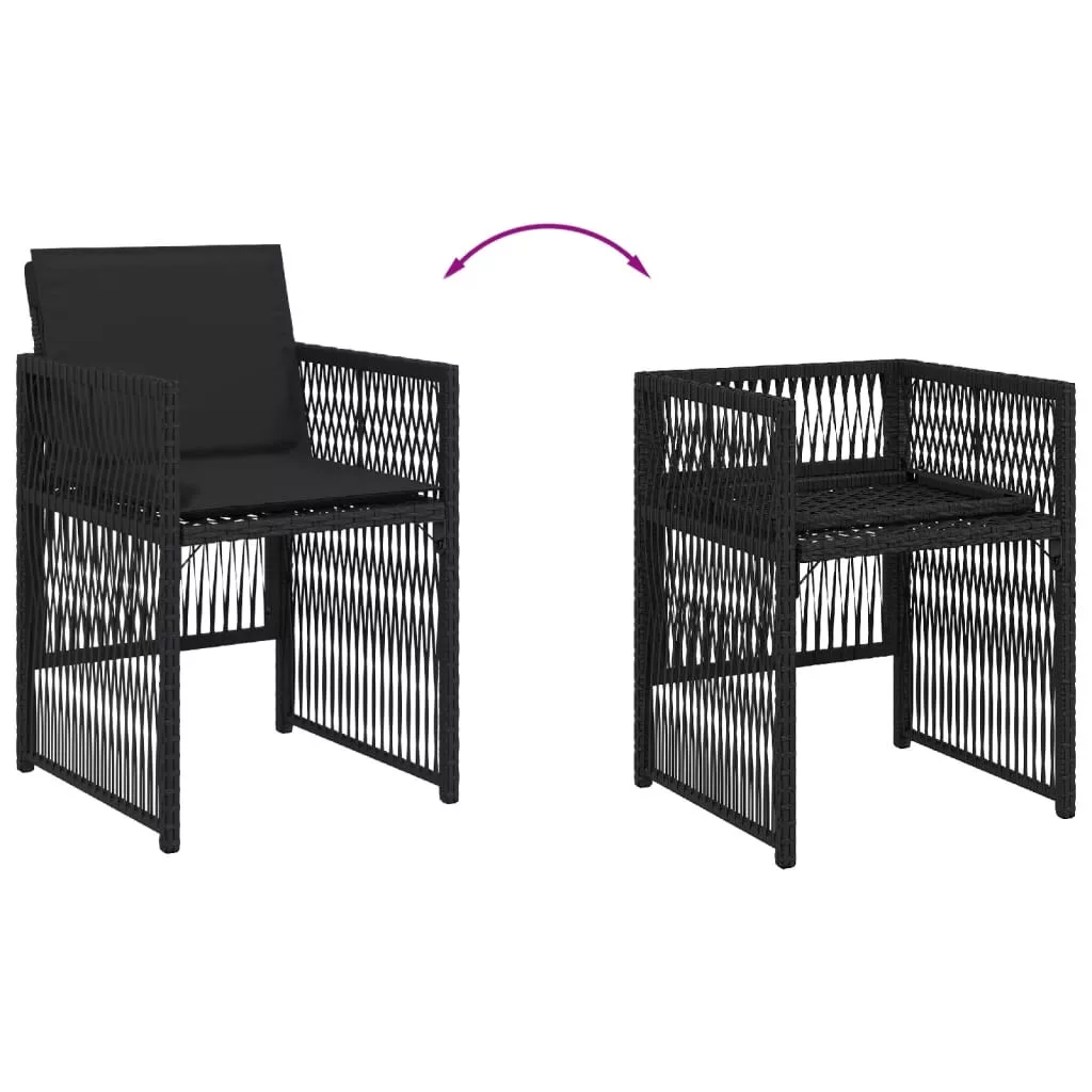 Pihenjen és élvezze a szabad levegőt ezeken a kényelmes kerti székeken! Tartós anyag: A PE rattan, más néven polyrattan, egy erős, kevés karbantartást igénylő szintetikus anyag, amely úgy néz ki, mint a természetes rattan. Könnyű, könnyen tisztítható, tartóssága és időjárásálló tulajdonságai miatt gyakran használják kültéri bútorok készítéséhez.Kényelmes ülőélmény: Ez a vastagon bélelt párnákkal kiegészített kültéri bútor kényelmes ülőélményt kínál.Lehajtható háttámla: Ezeknek a székeknek egy lehajtható háttámlája van a kompakt tárolás érdekében.Levehető és mosható huzat: Ezek a párnák levehető huzattal rendelkeznek az egyszerű mosás és karbantartás érdekében. A székpárnahuzatok hátulján fülek találhatók, így könnyen a székhez rögzíthetők.Robusztus és stabil váz: A porszórt acél váz biztosítja, hogy a kerti bútor erős és stabil legyen a mindennapi kültéri használathoz. Jó tudni:A kültéri bútor szépségének megőrzése érdekében javasoljuk, hogy vízálló huzattal fedje be.