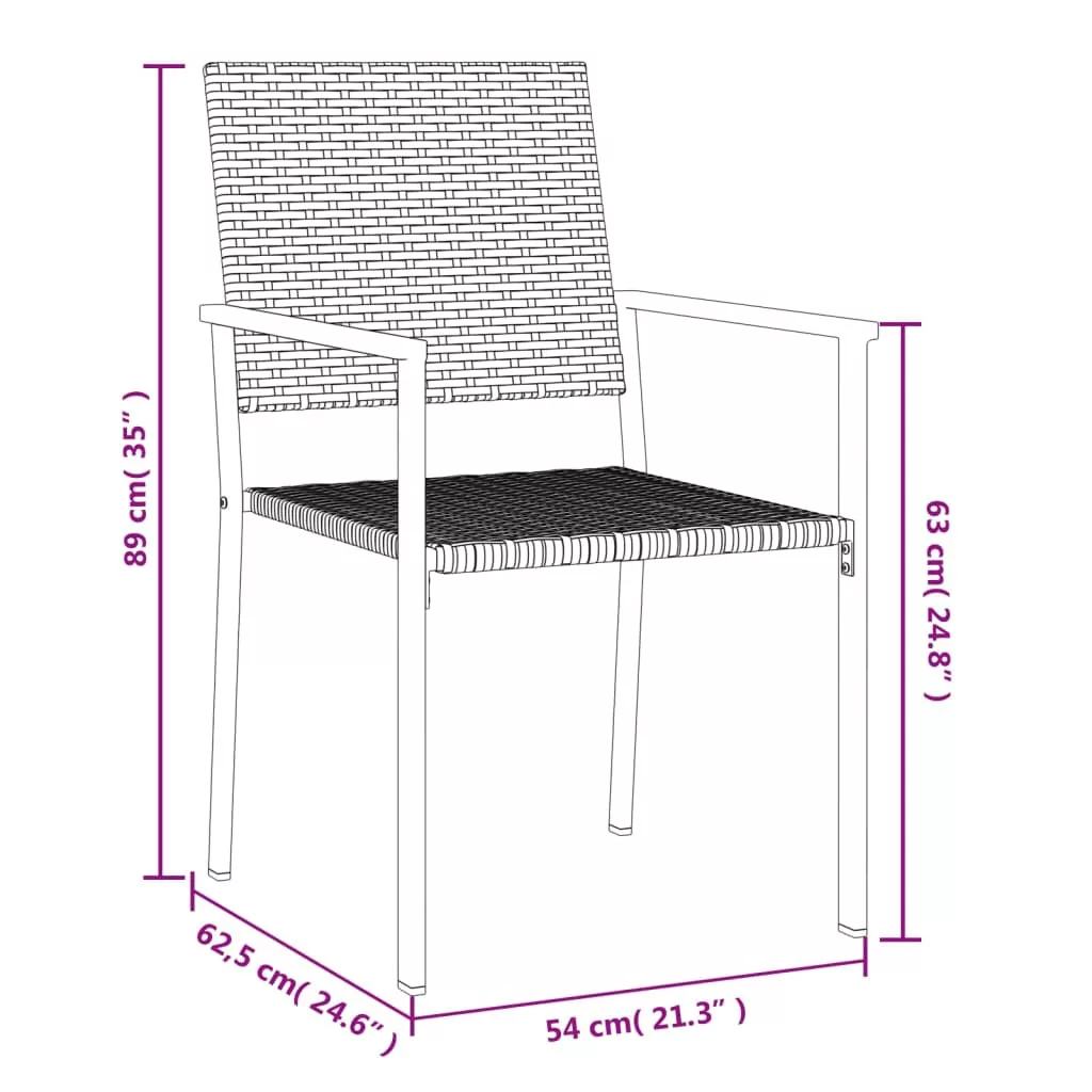 Ezek a stílusos kerti székek kertje és terasza ideális kiegészítői lesznek, és maradandó benyomást keltenek! Tartós anyag: A PE-rattan, más néven polyrattan, időjárásálló és könnyen tisztítható. Sokáig megőrzi szépségét a szabadban. Kiváló minőséget, kényelmet és esztétikus megjelenést garantál.Erős váz: Az acélváz masszívvá és stabillá teszi a kerti ülőalkalmatosságot a mindennapos kültéri használathoz.Kényelmes ülés: A háttámla és a karfák extra kényelmet biztosítanak a kültéri szék számára. Megjegyzés:A kültéri bútor szépségének megőrzése érdekében javasoljuk, hogy vízálló huzattal fedje be. Maximum 110 kg ülésenként.