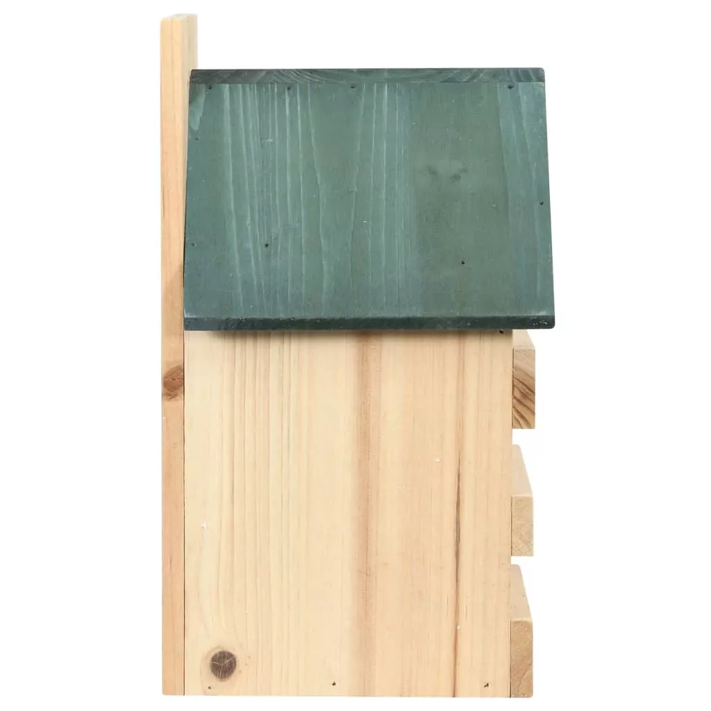 Ezek a speciális kialakítású fa madárházak menedéket nyújtanak tollas barátainak a kertben és a teraszon. A fészkelődoboz tömör fenyőfából készült, így időjárásálló, tartós és kültéri felhasználásra alkalmas. A madárház zöld tetővel és természetes fa oldalakkal rendelkezik. Egyszerre tökéletes dísz és hasznos madárfészek. A fa madárházat a tetején lévő előre fúrt lyukakkal könnyen felakaszthatja kertjében. Az elülső ajtó levételével kinyithatja a kerti madárházat, így könnyen ellenőrizheti és tisztíthatja a fészket. Kialakítása lehetővé teszi, hogy az ablakán keresztül figyelje a kikelő és növekvő madarakat.