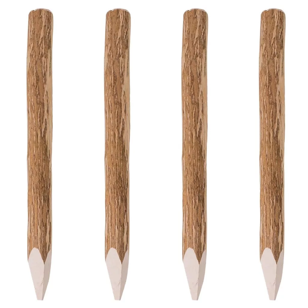 Ez az erős fa kerítésoszlop készlet ideális kertje elkerítéséhez. A kerítésoszlopok hegyes végüknek köszönhetően stabilan a földbe szúrhatók. Kopásálló, mogyorófából készültek, így amellett, hogy rendkívül masszívak és strapabíróak, a szélsőséges időjárási körülményeknek és az erős szélnek is ellenáll. A természetes, kezeletlen mogyorófa természetes bájt sugároz és bármely kert természetes jellegét kihangsúlyozza. A kezeletlen mogyorófa legalább 10 évig ellenáll minden időjárási körülménynek, így hosszú időn át élvezheti a kerítésoszlopokat. A szállítmány 4 db kerítésoszlopot tartalmaz.
