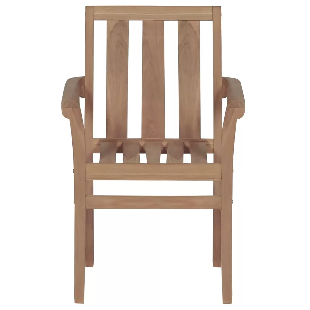 Ez a kültéri, fából készült, rakásolható székekből álló szett időtlen dizájnnal rendelkezik. A székek egyszerű, mégis stílusos dizájnjuknak köszönhetően rengeteg berendezési stílushoz illenek, így otthonában, irodákban, bárokban és kávézókban is használhatja őket. A strapabíró tík keményfából készült bútordarab természetesen, illetve kemencében volt szárítva, majd finomra lett csiszolva az elegáns megjelenés érdekében. A tíkfa rendkívül szilárd és időjárásálló, ezért sokkal alkalmasabb kerti bútornak, mint bármely más fa. Ha hosszú időn keresztül tartó kerti bútort szeretne vásárolni, a tíkfa a tökéletes választás. Ezek a székek a helytakarékosság érdekében használaton kívül rakásolhatóak. A termék gyönyörű bevonattal van ellátva, mely meleg színnel ruházza fel a fát. Megjegyzés: kültéri bútora élettartamának meghosszabbítása érdekében javasoljuk, hogy tisztítsa rendszeresen, és ne hagyja feleslegesen a szabadban, védelem nélkül.Tisztítás: használjon enyhe szappanoldatot.Tárolás: Ha lehetséges, tárolja zárt, hűvös, száraz helyen. Ha a terméket a szabadban tárolja, védje vízálló burkolattal. Eső vagy havazás után törölje le és szárítsa fel a felesleges vizet vagy havat a sima felületekről. Hagyjon elegendő légkeringést a nedvességből eredő károk elkerülése érdekében. Maximum 110 kg ülésenként.