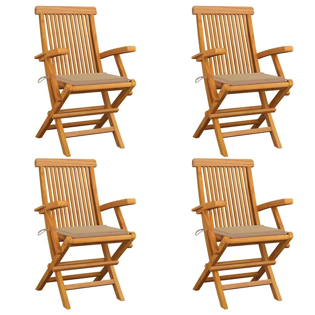4 db tömör tíkfa kerti szék bézs párnákkal