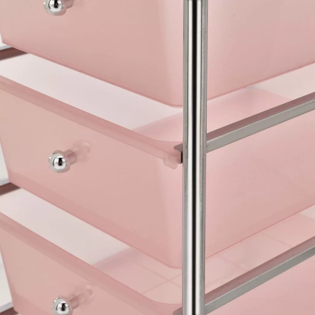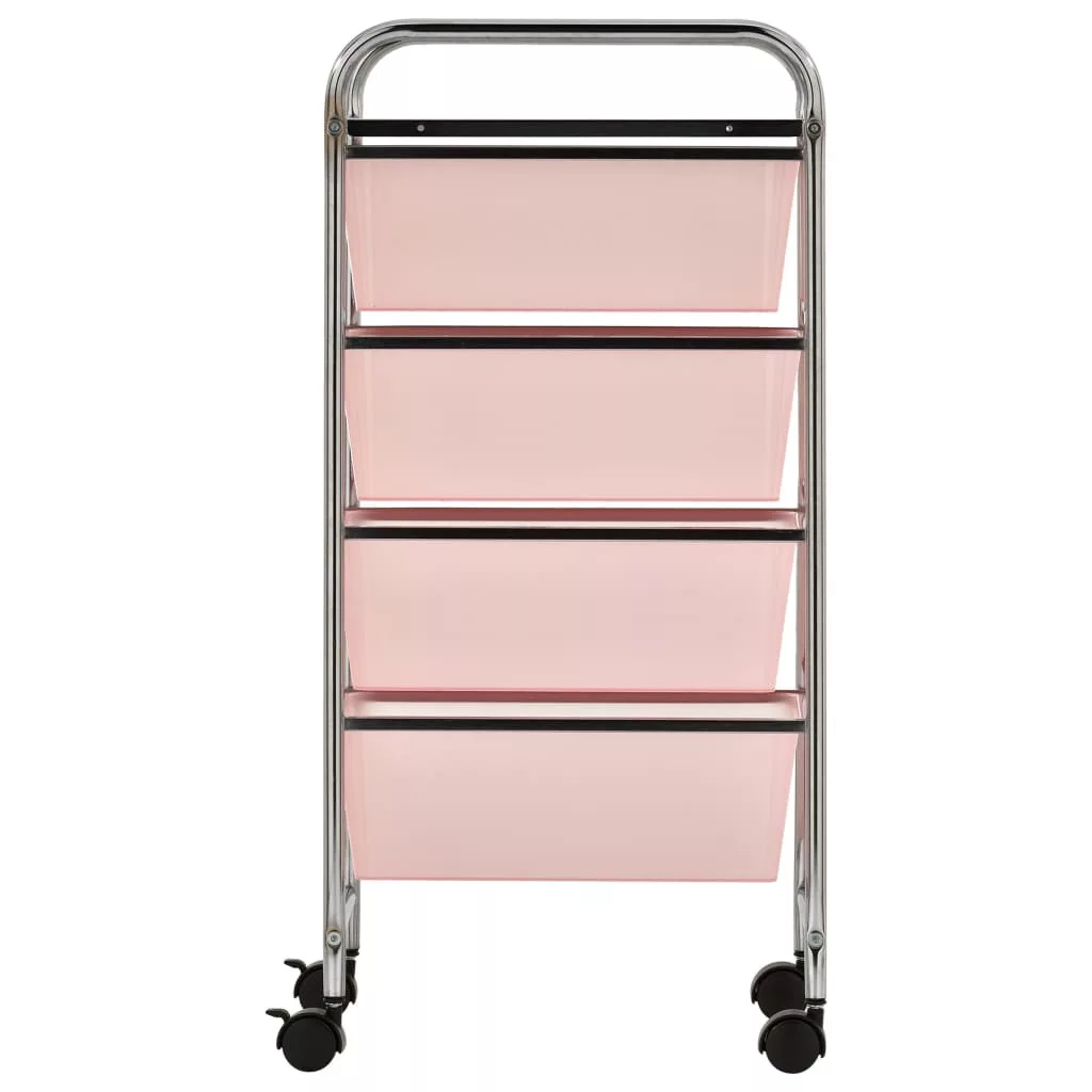 4 fiókos mozgatható rózsaszín műanyag tárolókocsi
