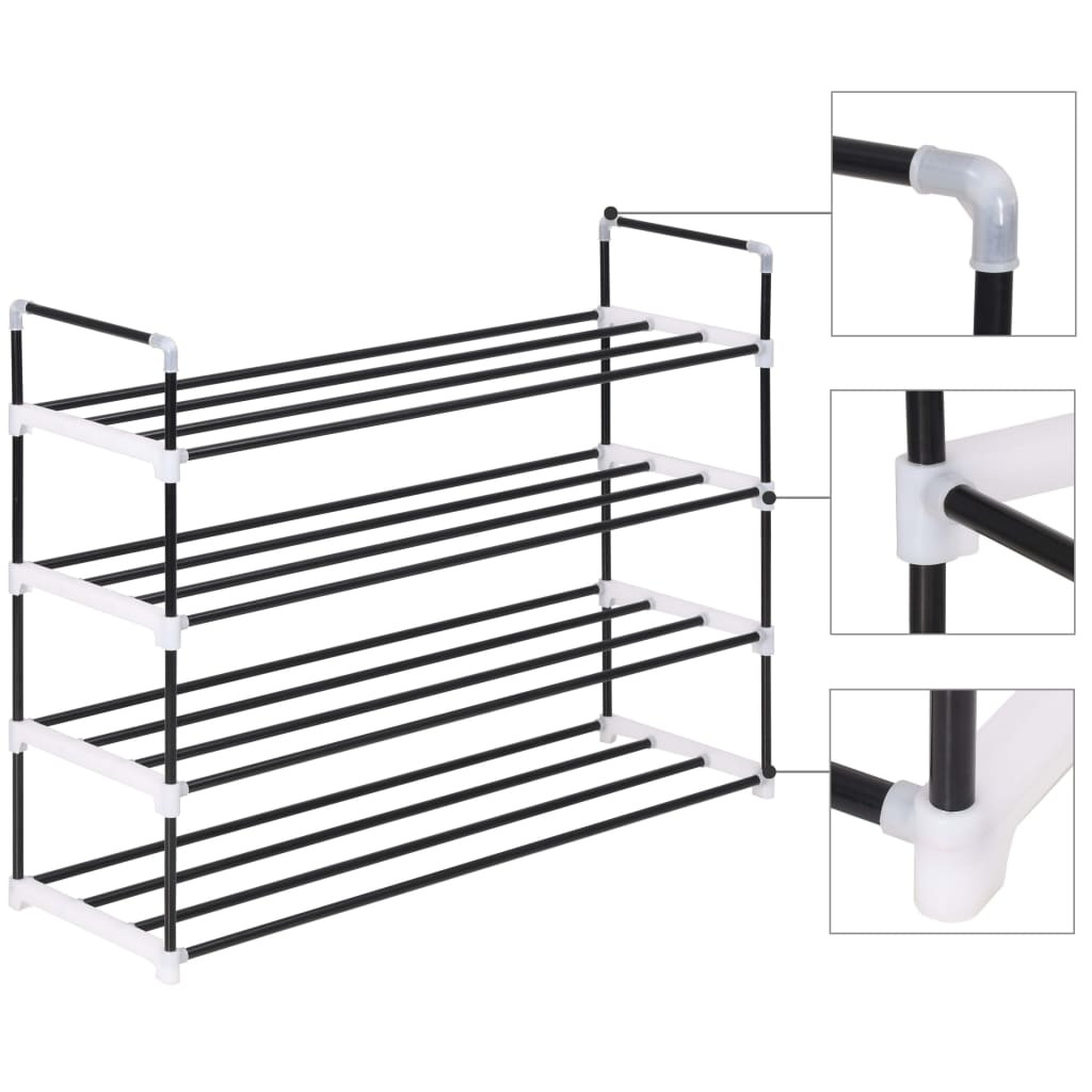 Ez a minimalista cipőtartó állvány ideális megoldást kínál cipői tárolására. Cső alakú fémvázzal rendelkezik, mely könnyűsúlyú, mégis strapabíró, így a cipőtartó rendkívül könnyen mozgatható és időtálló. Négy nagyméretű polccal van felszerelve, melyek bőséges helyet kínálnak cipői rendezett tárolására. Könnyen összeszerelhető.