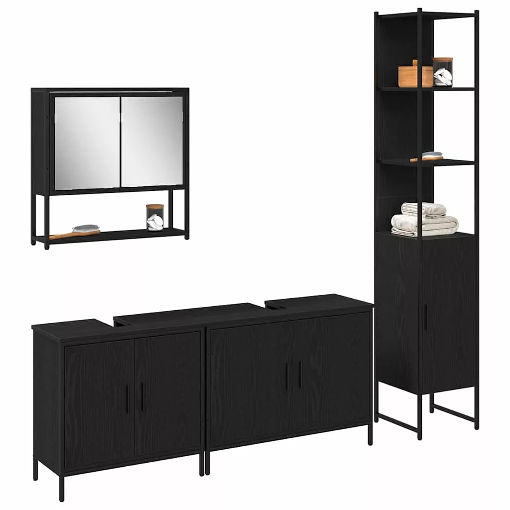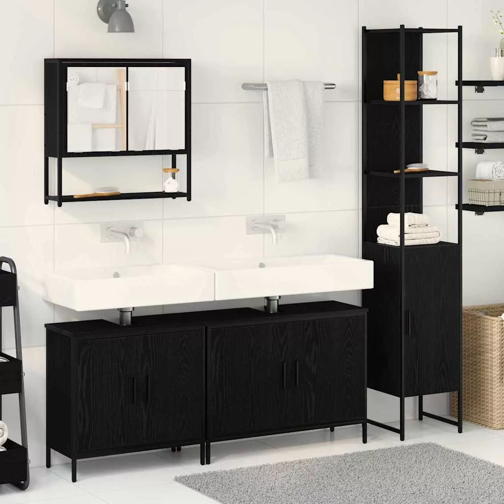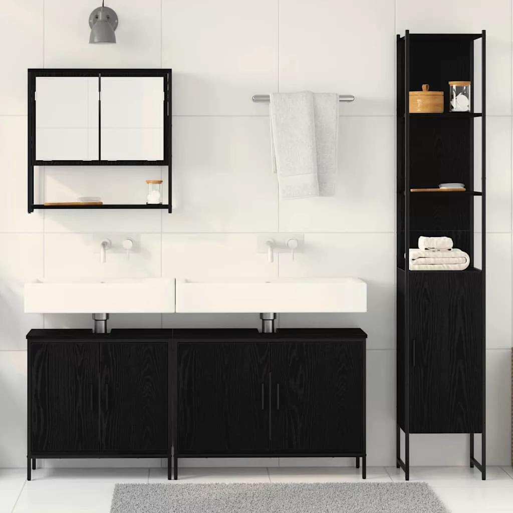 4 részes fürdőszoba bútor készlet fekete tölgyből és mérnöki fából