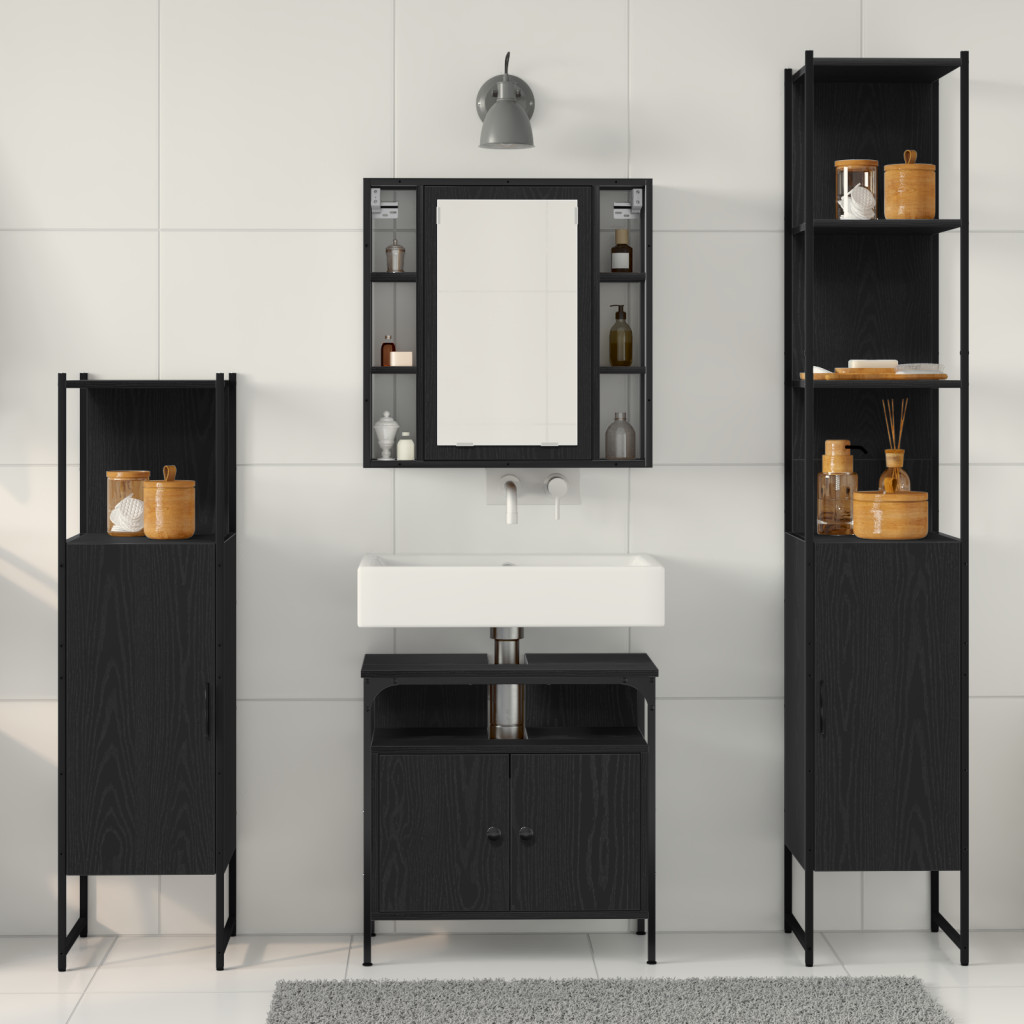 4 részes fürdőszoba bútor szett fekete tölgyből—műanyag