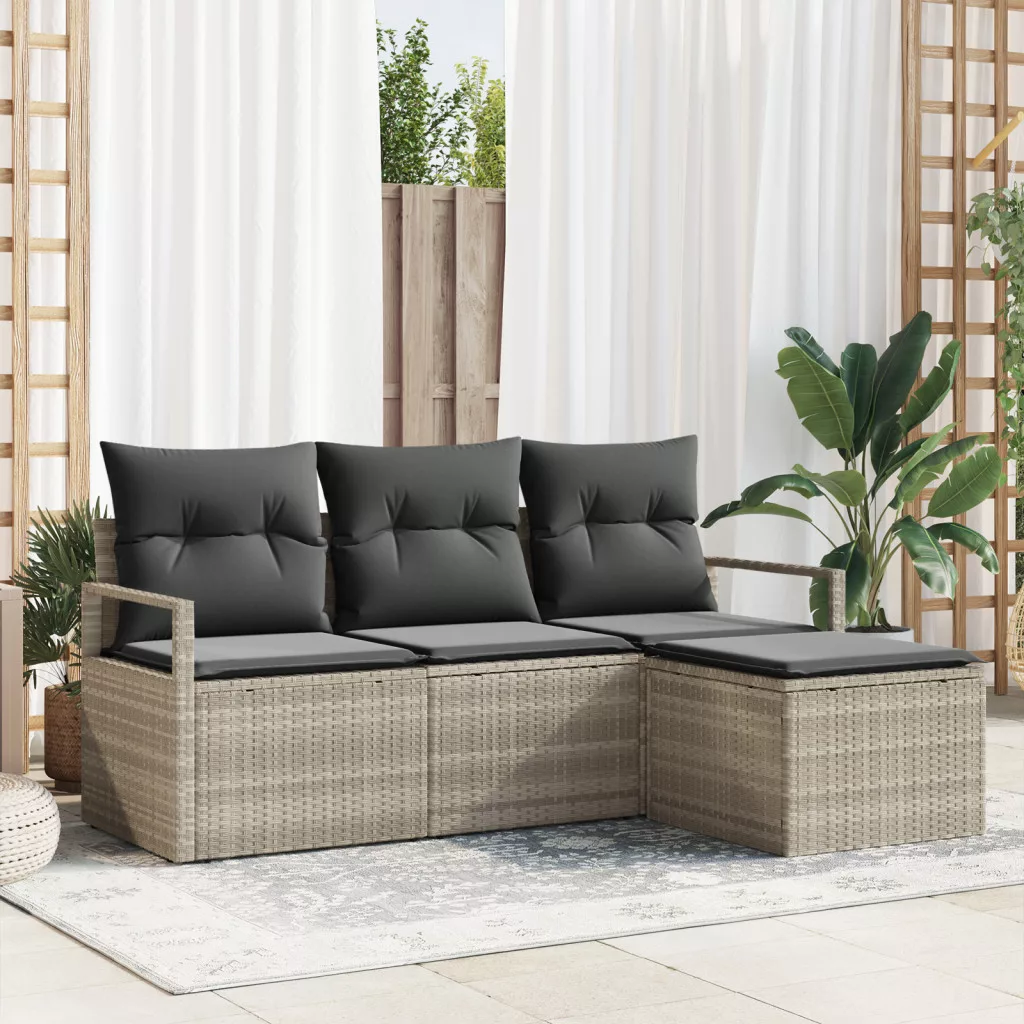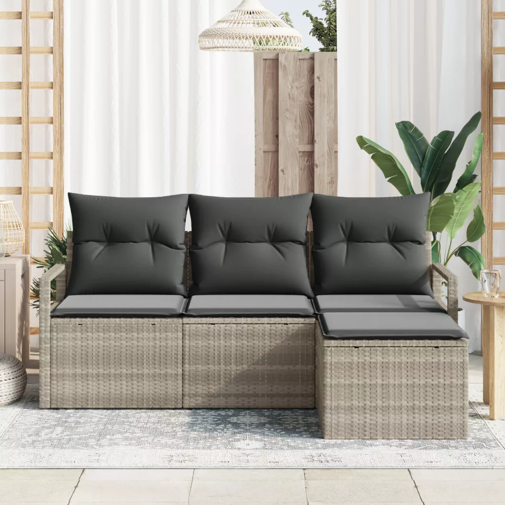4 részes kert kanapé szett párnákkal, világosszürke, poli rattan
