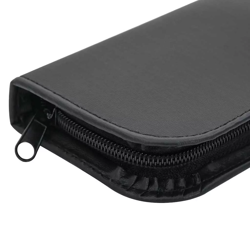 Fekete bőr tok méretei: 21,5 x 9 x 3 cm (Ho x Szé x Va)