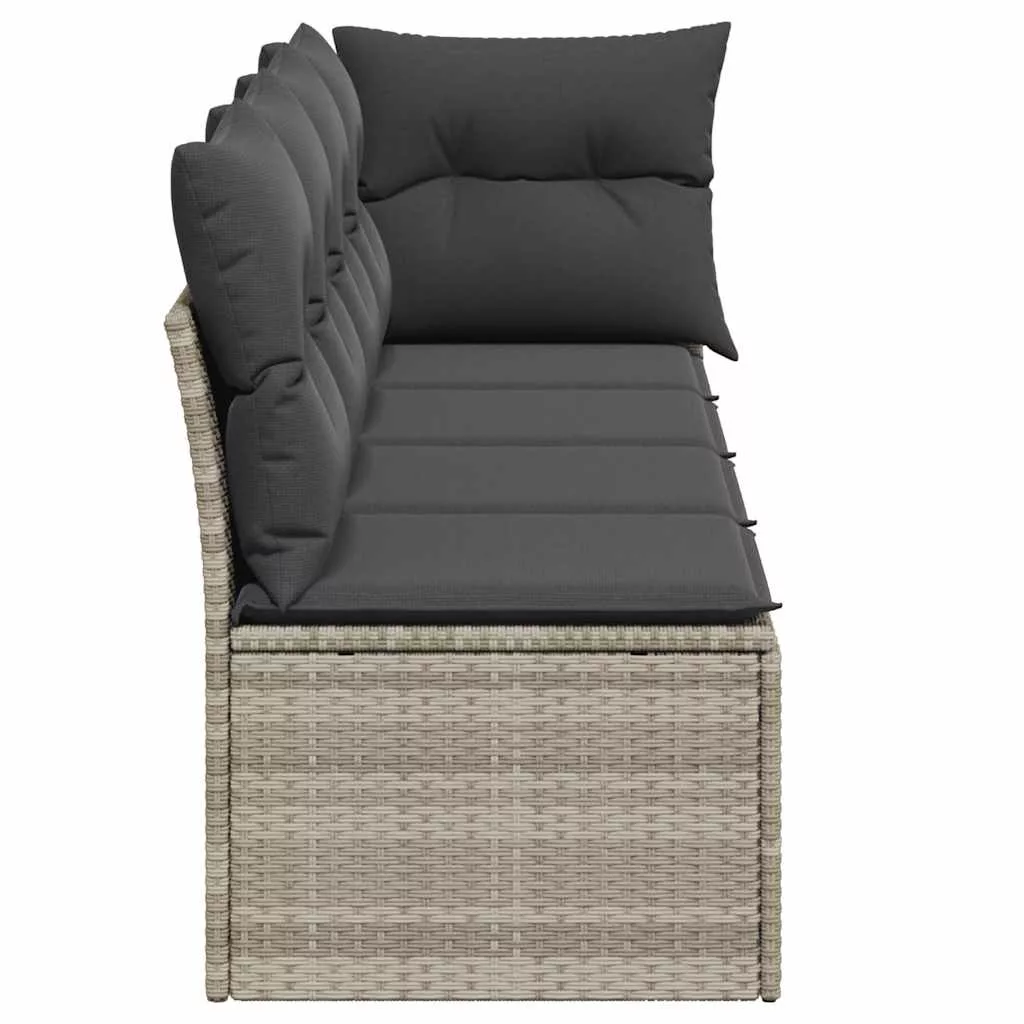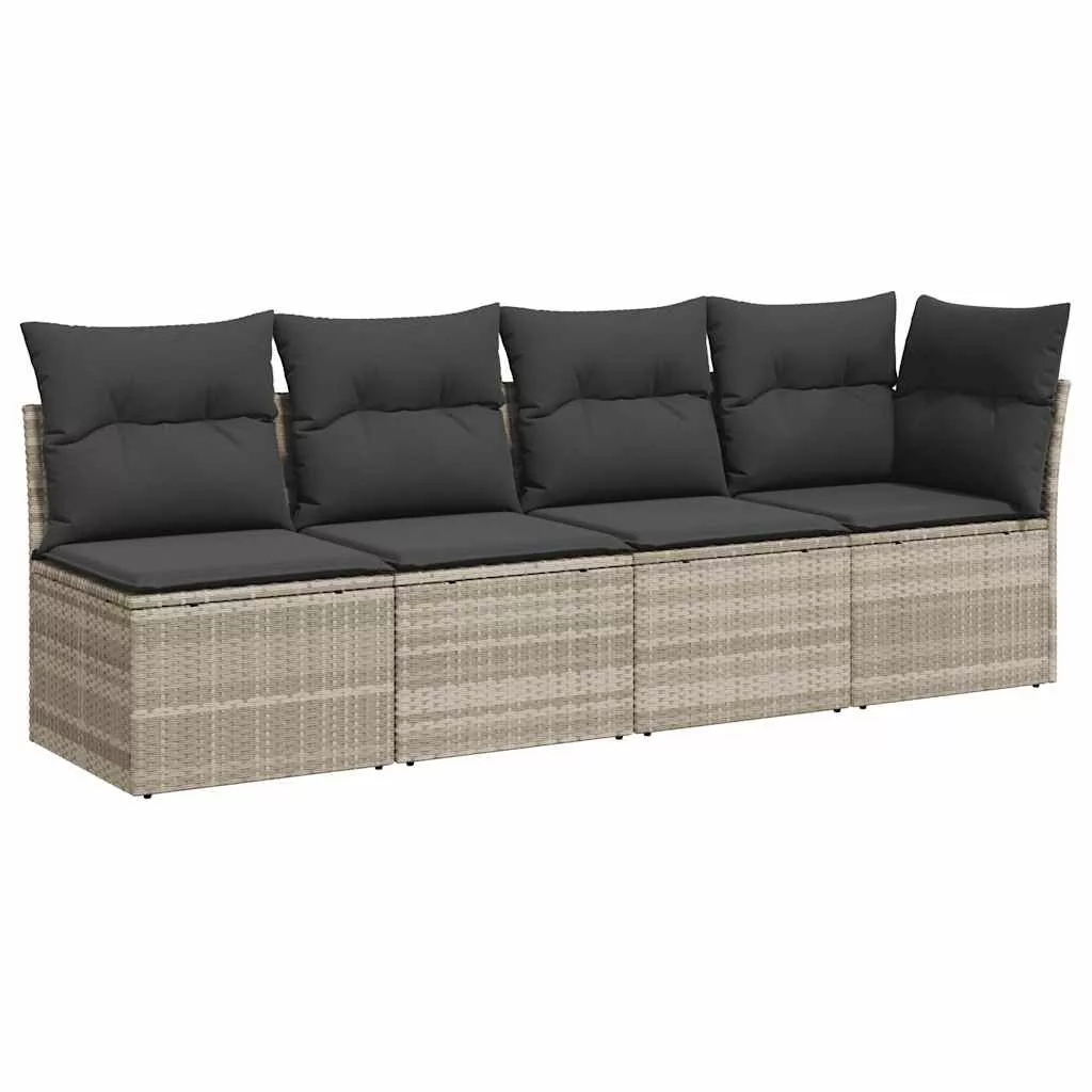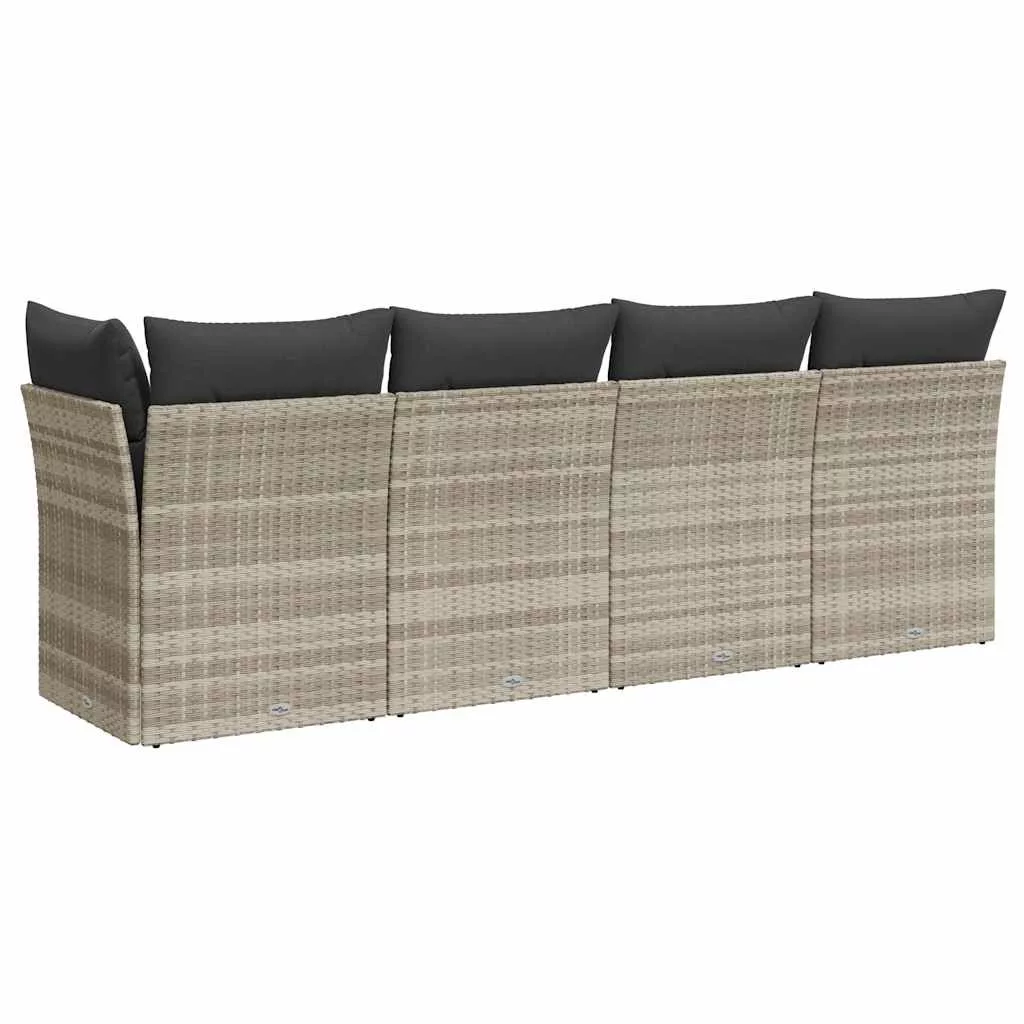 4 személyes világosszürke polyrattan kerti kanapé párnával