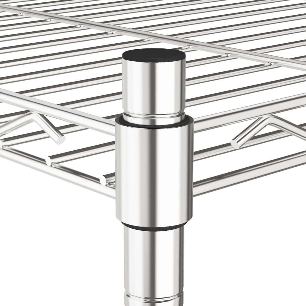 Ez a drót tárolópolc ideális megoldás háztartási és kereskedelmi tárolásra például konyhában, mosókonyhában, pincében, fürdőszobában, irodában, garázsban, műhelyben vagy bárhol, ahol extra tárolóhelyre van szüksége. Rengeteg helyet biztosít az összes alapvető holmi rendezett tárolásához. A krómozott vasból készült tárolórendszer rendkívül tartós. Az ipari stílusú polcok 4 kerékkel vannak felszerelve az egyszerű mozgathatóság érdekében. Ne használja ezt az elemet, ha valamelyik alkatrésze eltört, elszakadt vagy hiányzik.