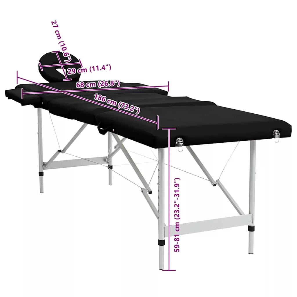 4 zónás fekete összecsukható masszázsasztal alumínium vázzal
