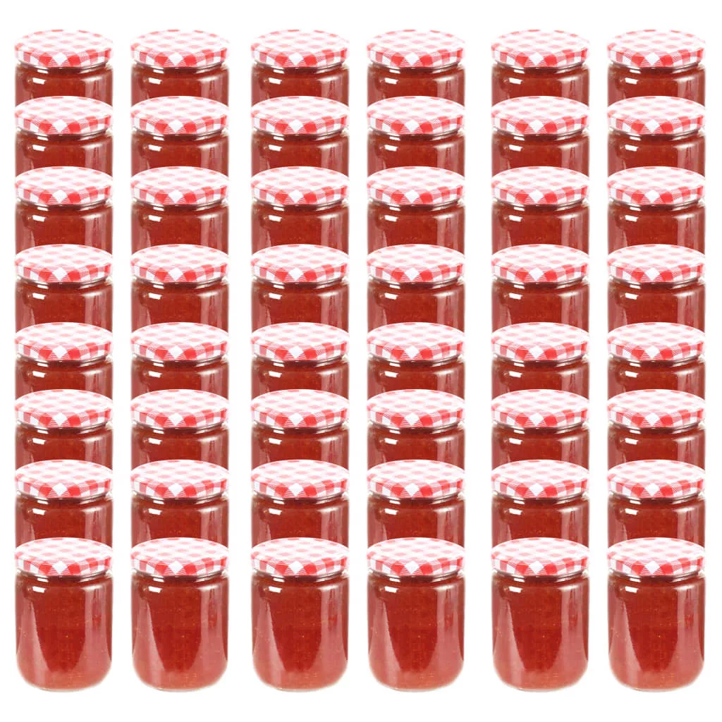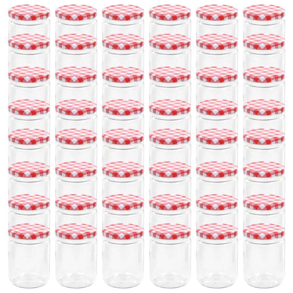 48 db 230 ml-es befőttesüveg piros-fehér tetővel