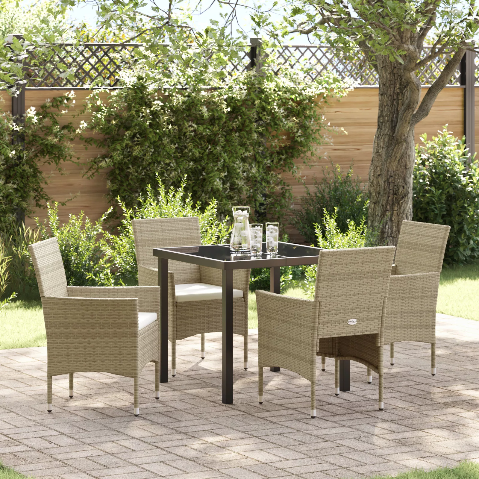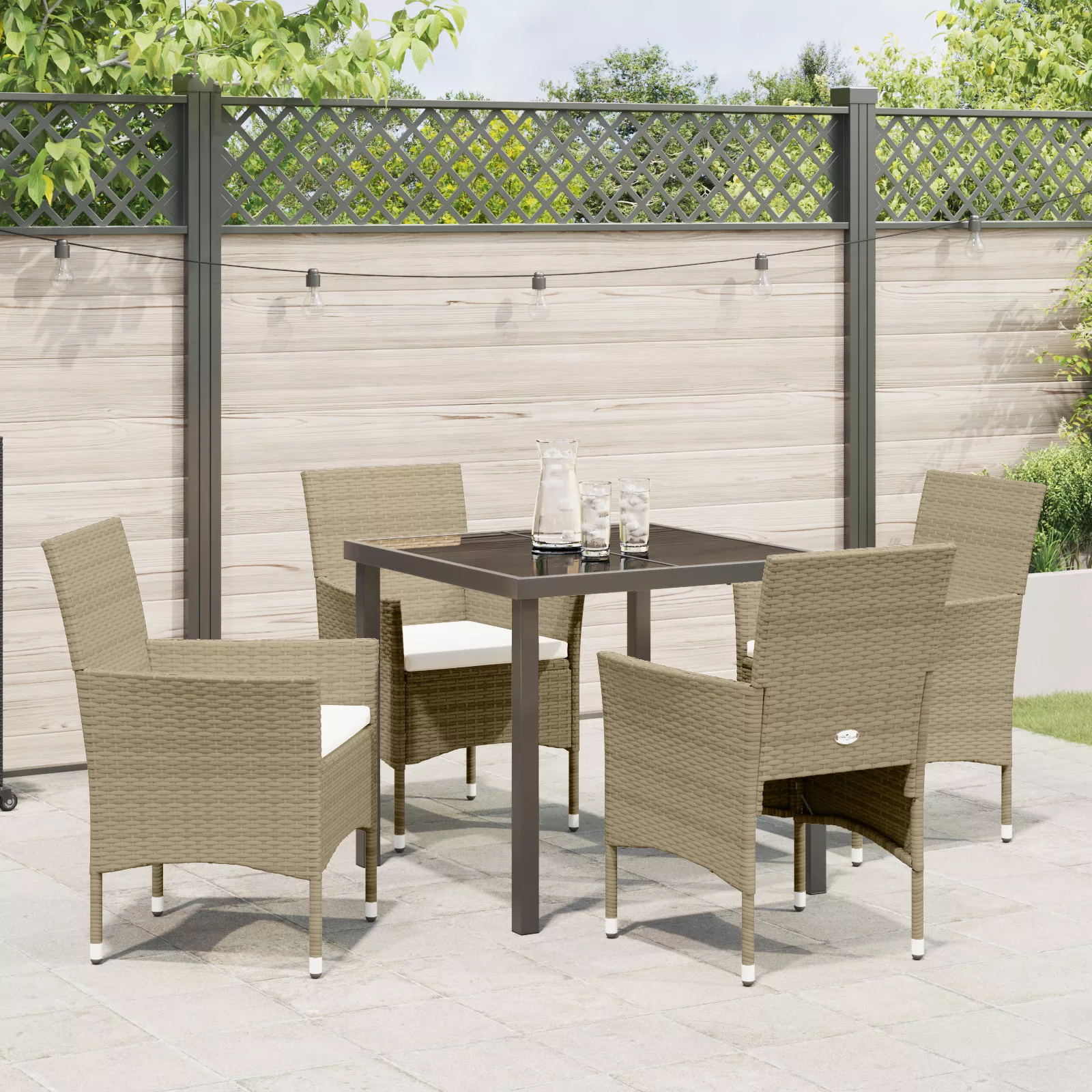 5 Darabos Kerti Ebédlő Szett Bézs Poli Rattan