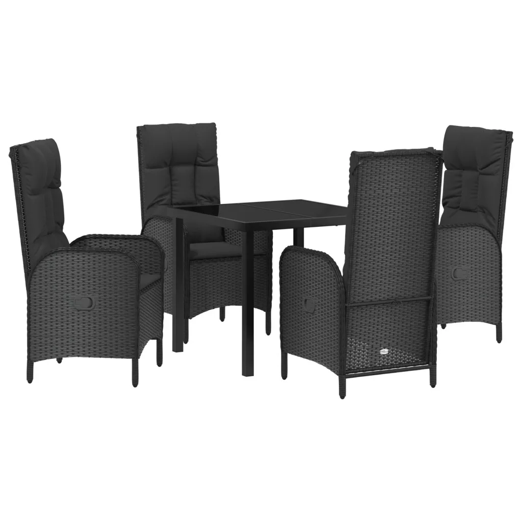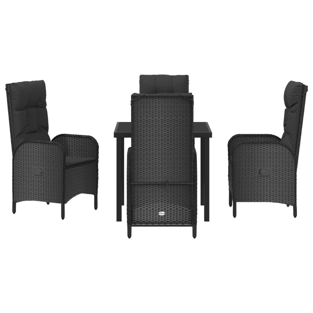 5 Darabos Kerti Étkező Készlet Fekete Poli Rattan