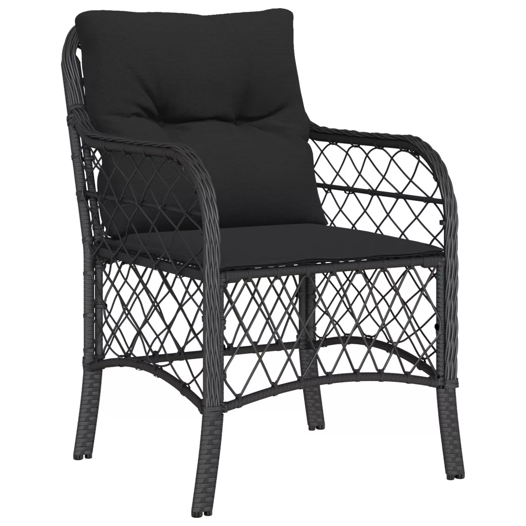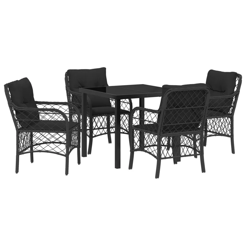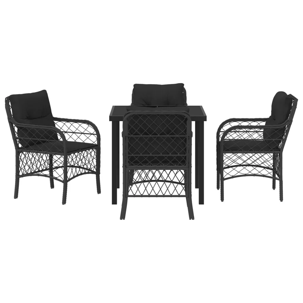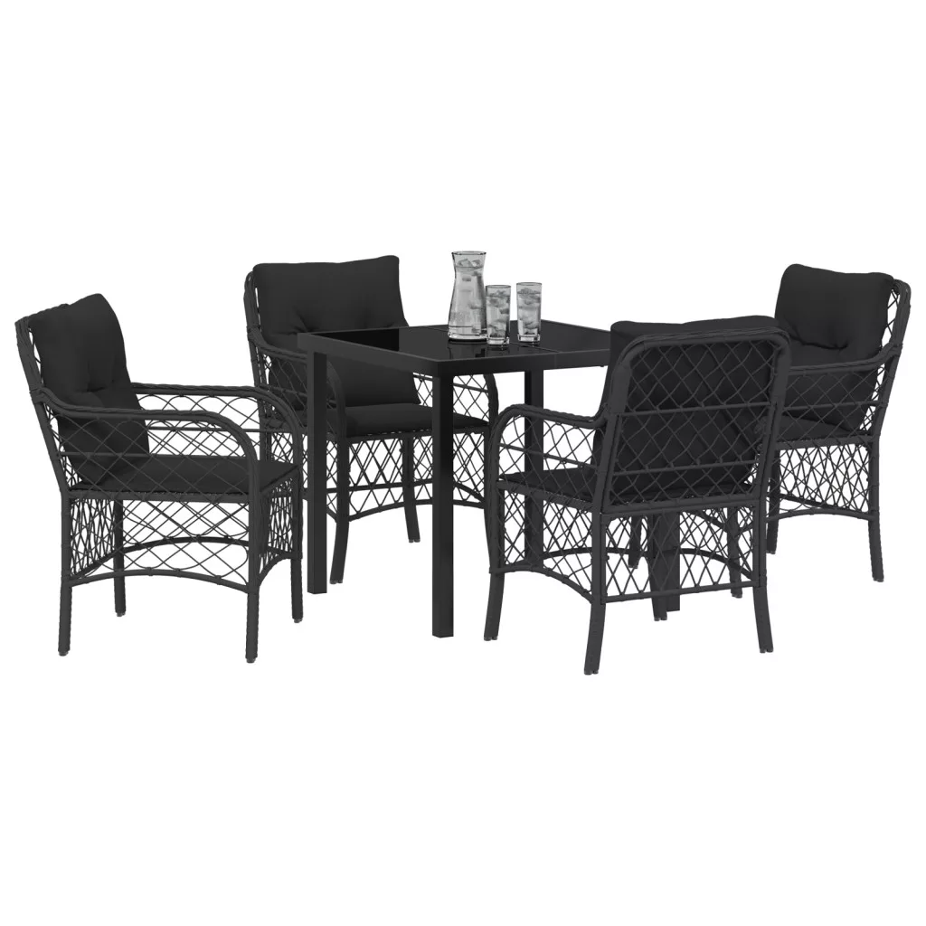 5 Darabos Kerti Étkező Szett Párnával Fekete Poli Rattan