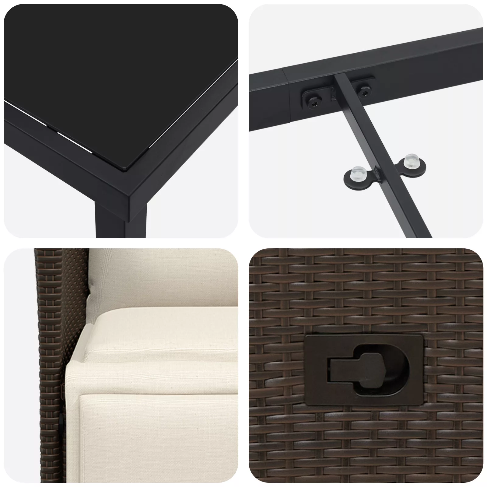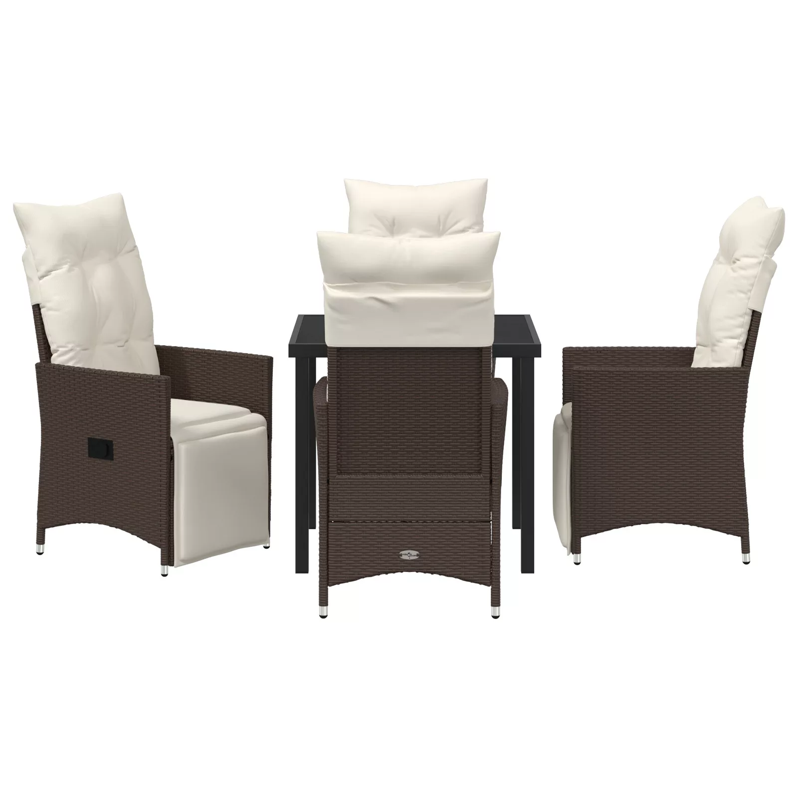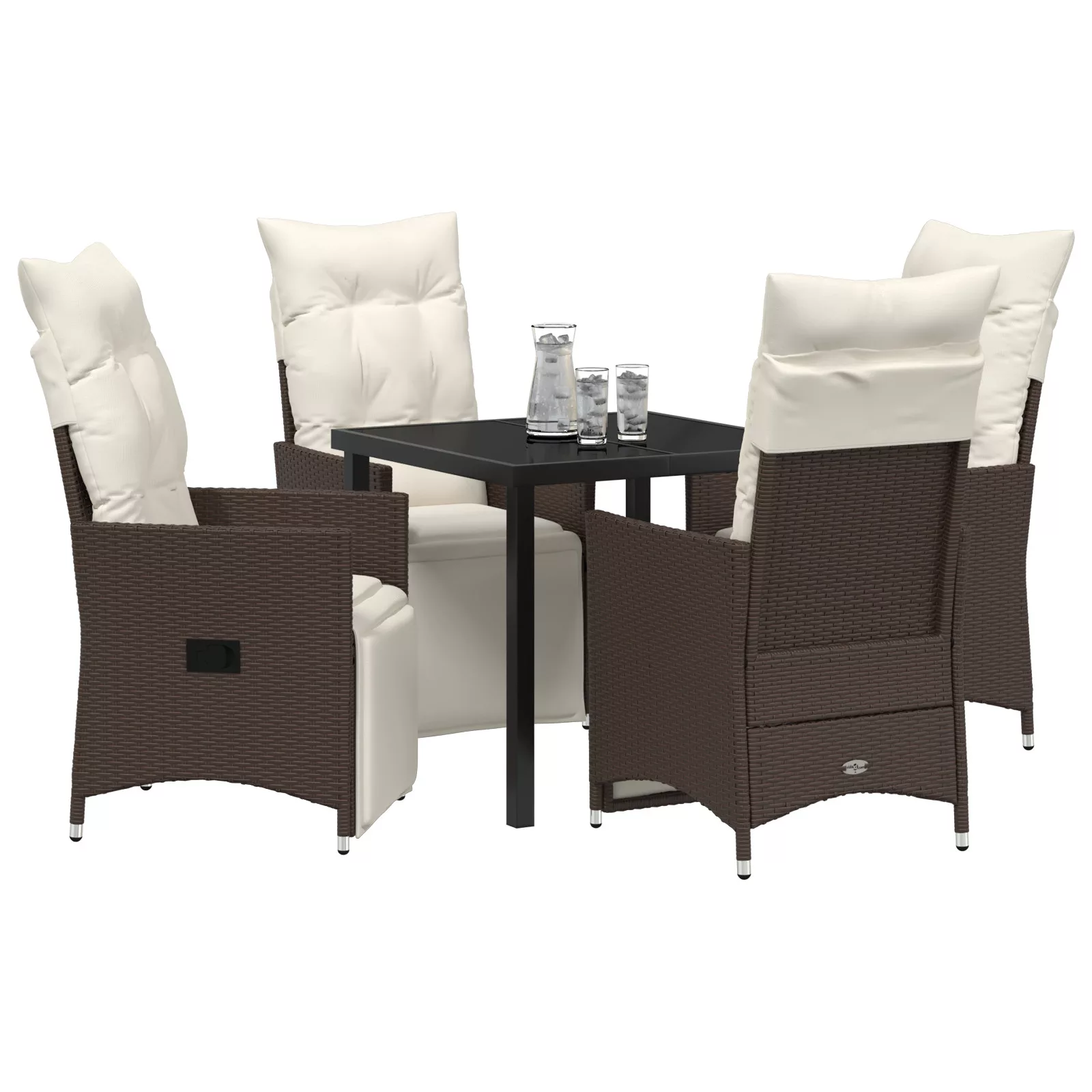 5 Darabos Kerti Étkezőasztal Készlet Párnákból Barna Poli Rattanból